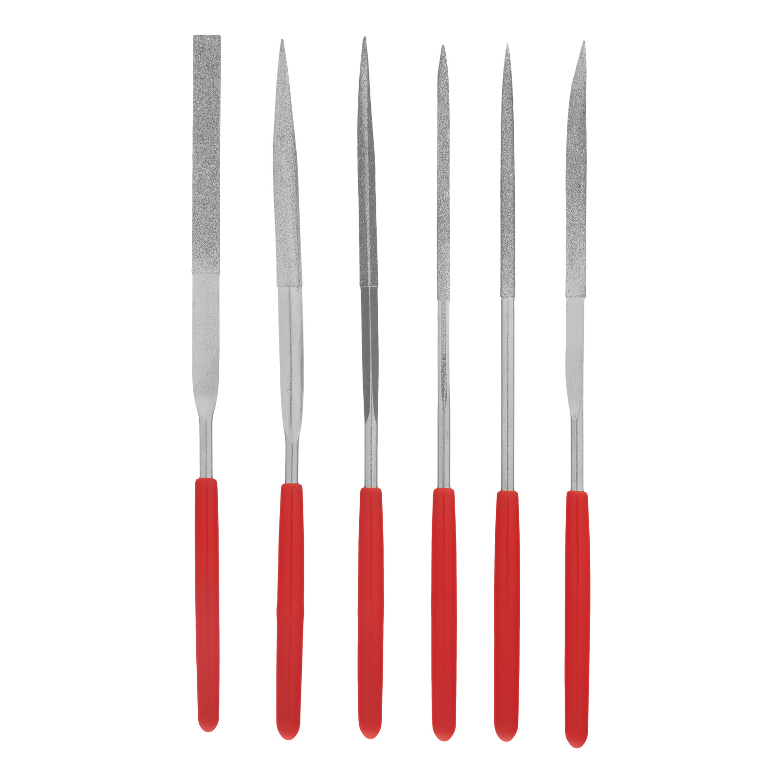 Набор алмазных надфилей Matrix 15831 размером 140 х 50 х 3 мм предназначен для выполнения точных работ и используется для доводки и зачистки мелких деталей. Подходит для обработки металлических, стеклянных, керамических поверхностей. Набор универсален, т. к. в него входят 6 надфилей с разными сечениями профилей, что позволяет опиливать ровные поверхности, а также углы, пазы, отверстия и округлые выступы. Надфили пригодятся в слесарном деле, при занятиях моделированием, будут полезны и в быту.