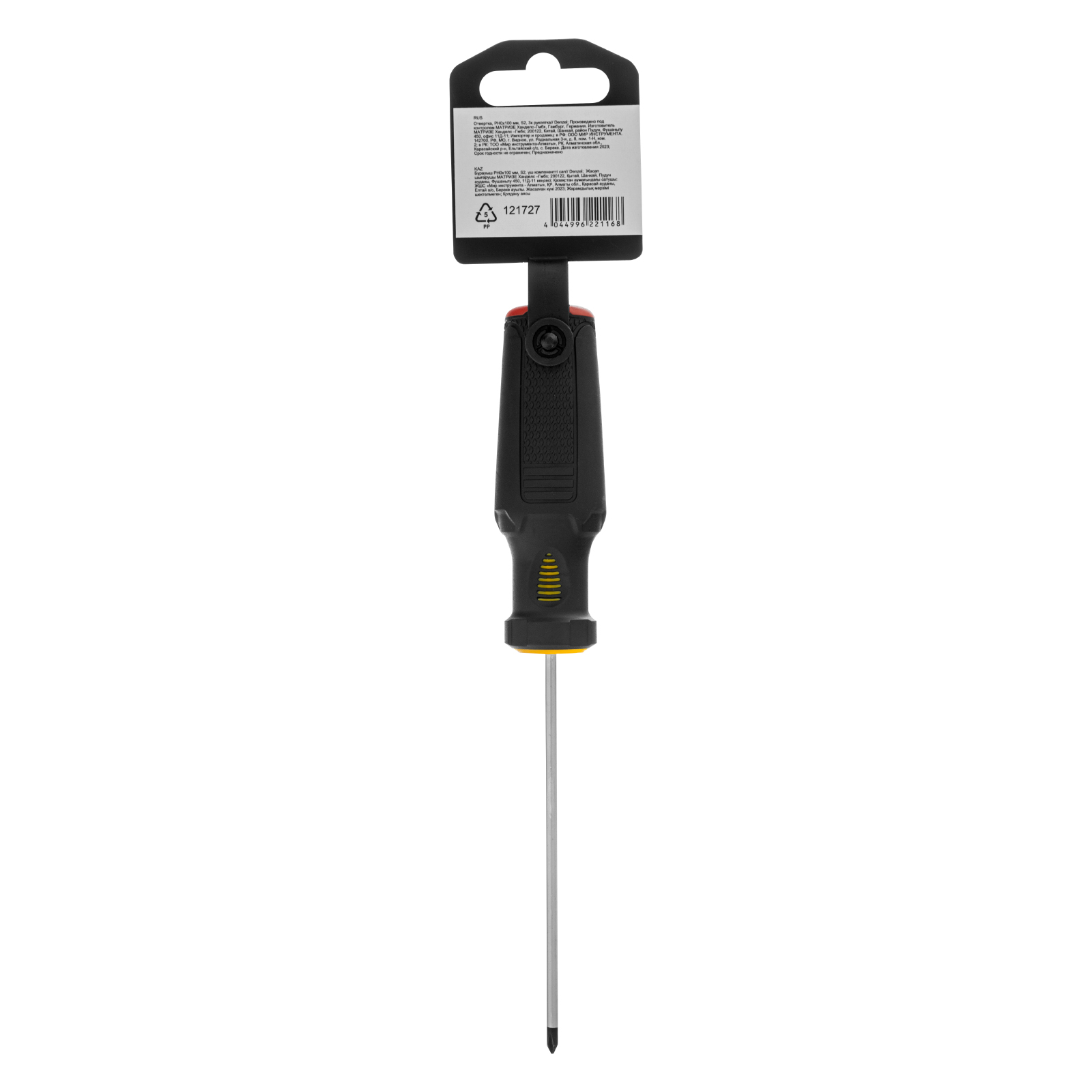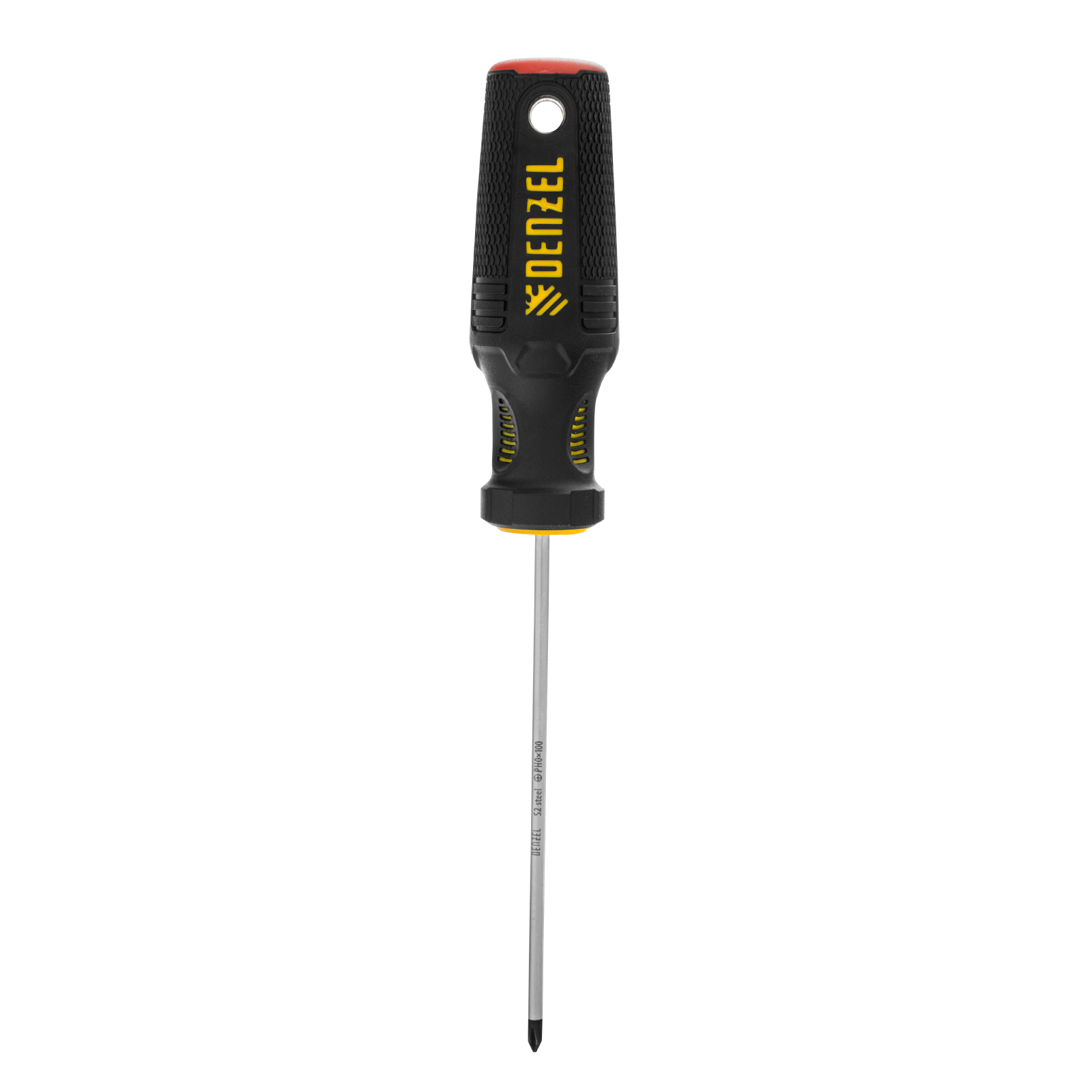 Отвертка Denzel 121727 с трехкомпонентной рукояткой, со стержнем из стали S2, длиной 100 мм, предназначена для закручивания и откручивания резьбового крепежа типа PH0. Высокоточный намагниченный шлиц избавляет мастера от необходимости придерживать винт или саморез рукой. Отвертка рекомендована для профессионального использования.