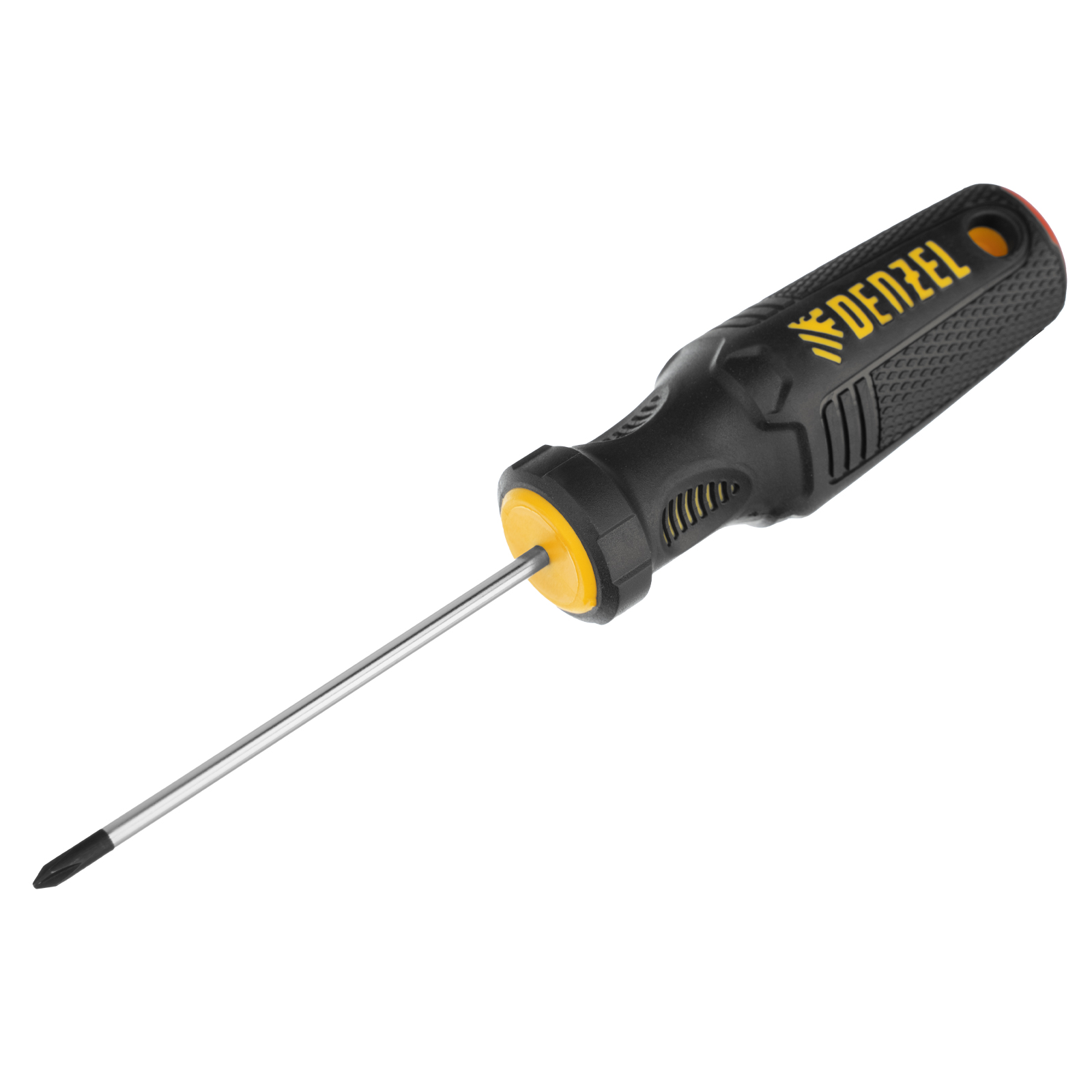 Отвертка PH0 х 75 мм Denzel 12171 из стали CrV, с трехкомпонентной рукояткой, предназначена для закручивания и откручивания резьбовых крепежей типа Philips. Шлиц намагничен, что избавляет от необходимости придерживать винт или саморез рукой. Отвертка рекомендована для профессионального использования.