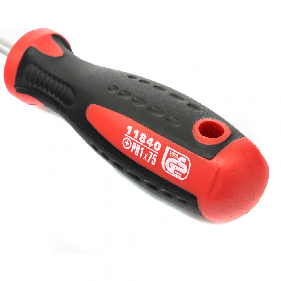 Отвертка Matrix «Profi» 11840 длиной 75 мм, из стали S2, с двухкомпонентной рукояткой, служит для монтажа и демонтажа резьбовых соединений типоразмера PH1. Профессиональная отвертка станет незаменимым помощником при осуществлении монтажных, строительных и ремонтных работ. Благодаря стержню длиной 75 мм можно закручивать и откручивать крепеж в углублениях.