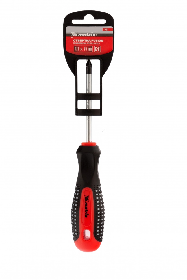 Отвертка Matrix Fusion 11401, PZ1 x 75 мм, CrV, с 3-х компонентной рукояткой «anti slip», используется для монтажа и демонтажа крепежных элементов калибра Pozidriv 1 с дополнительными ребрами на шлице. Она пригодится профессиональным мастерам при осуществлении строительных и монтажных работ. Длина стержня 75 мм оптимально подходит для работ на поверхностях и в углублениях.
