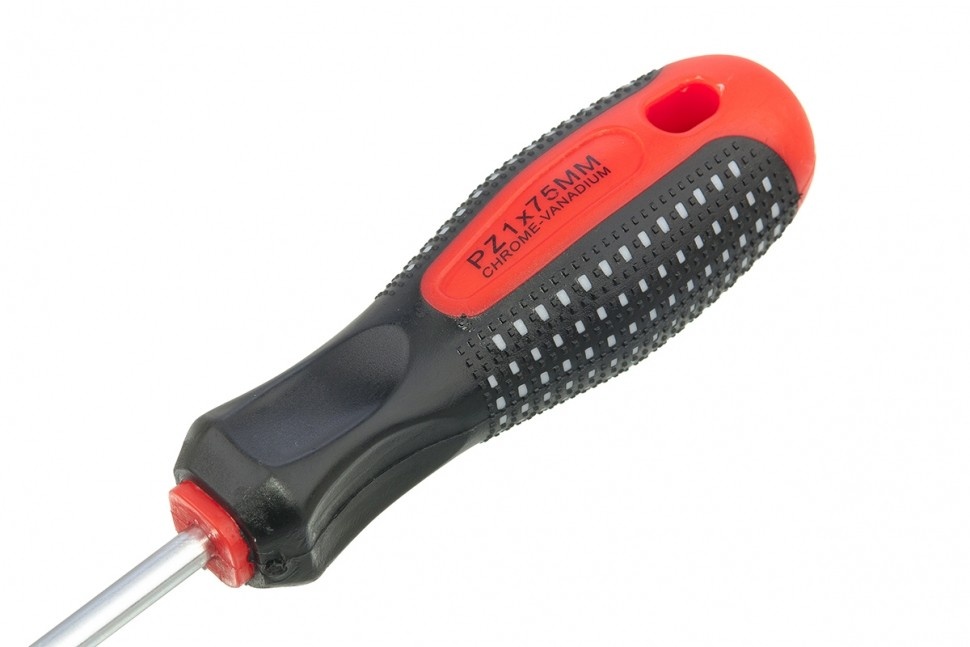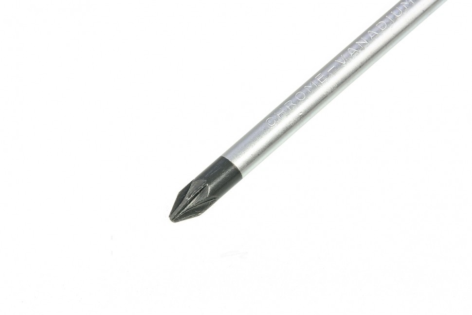 - Стержень и жало выполнены из износостойкой легированной стали CrV твердостью 50-52 HRC, что обеспечивает долгий срок службы отвертки.