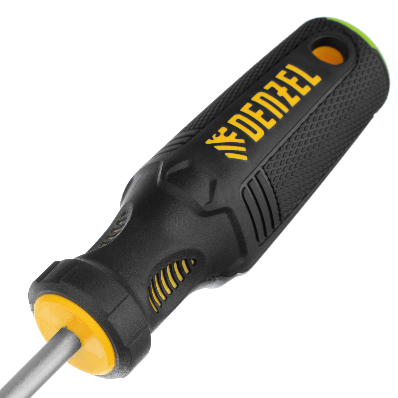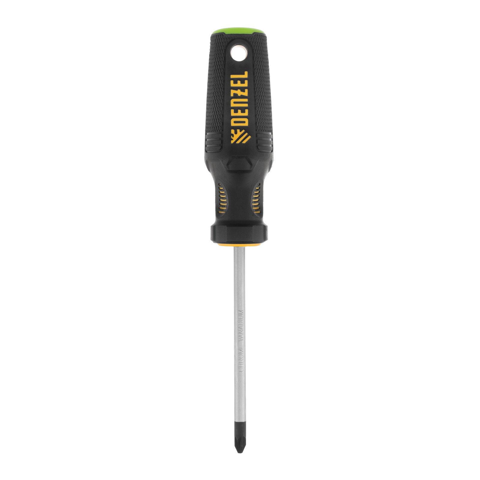 Отвертка PZ2 x 100 мм Denzel 12207 из стали CrV, c трехкомпонентной рукояткой, предназначена для монтажных и демонтажных работ с резьбовыми соединениями типа Pozidriv. Благодаря намагниченному шлицу отвертку с крепежом можно направлять одной рукой, удерживая другой закрепляемую деталь. Инструмент подходит для профессионального использования.