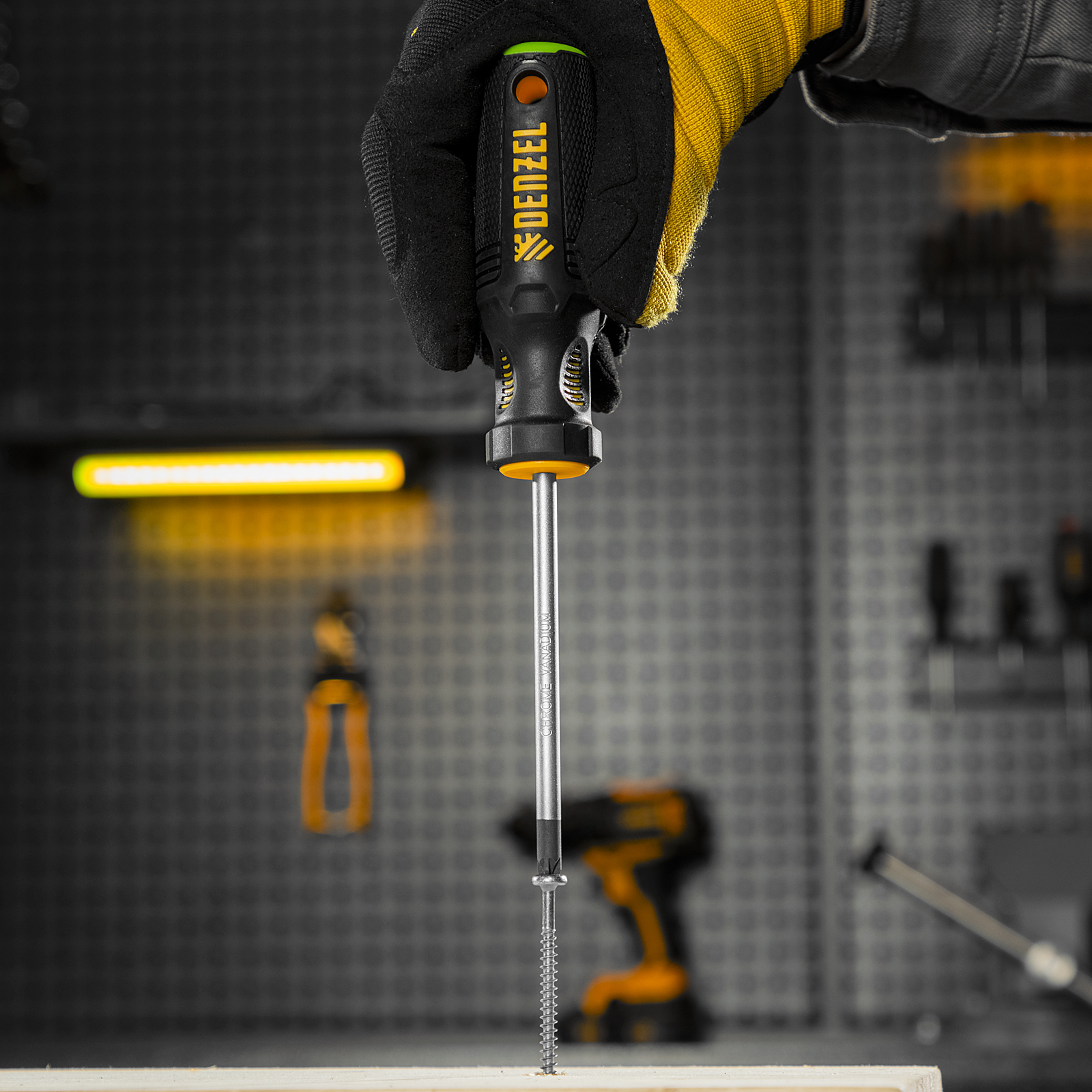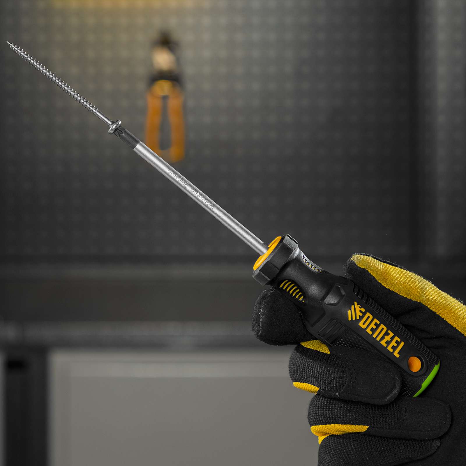 - Удобное хранение — отверстие в рукоятке позволяет подвешивать отвертку на крючок или скобу.