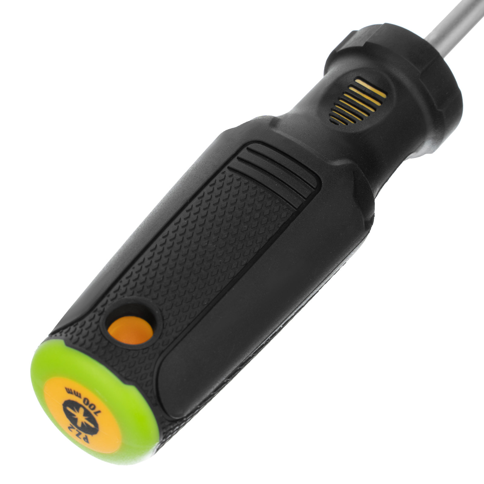 - Продуманная маркировка — цветное кольцо на затыльнике соответствует типоразмеру отвертки, что облегчает поиск нужного инструмента.