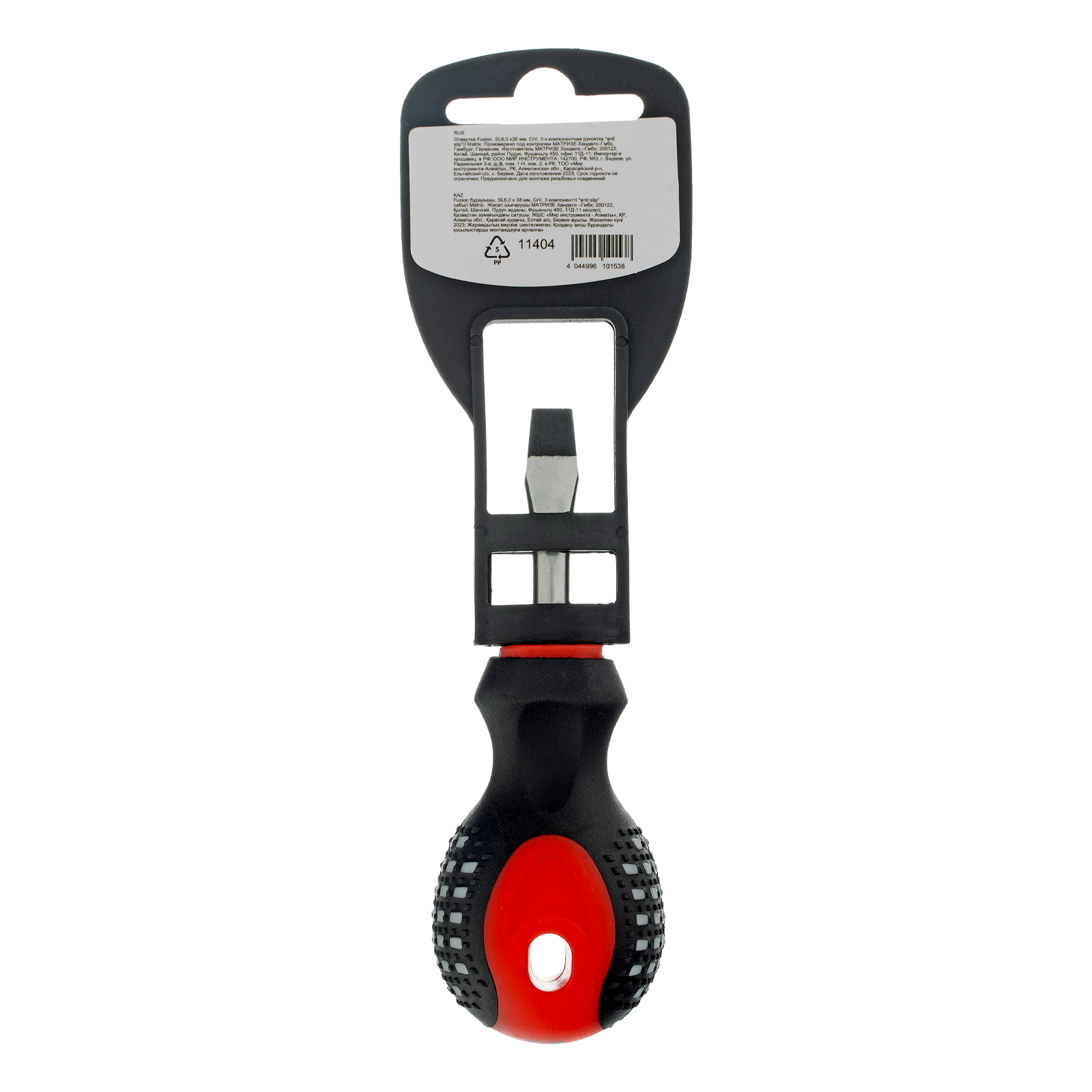 Отвертка Matrix Fusion 11404 под шлиц SL6,0, со стержнем длиной 38 мм, из стали CrV, с 3-компонентной рукояткой «anti slip», предназначена для завинчивания и отвинчивания резьбового крепежа со шлицем Slotted «минус». Рассчитана на профессиональное использование, используется для ремонта автомобилей, монтажа конструкций и решения других задач. Укороченный до 38 мм стержень делает отвертку оптимальным инструментом для работы в труднодоступных местах и ограниченном пространстве.