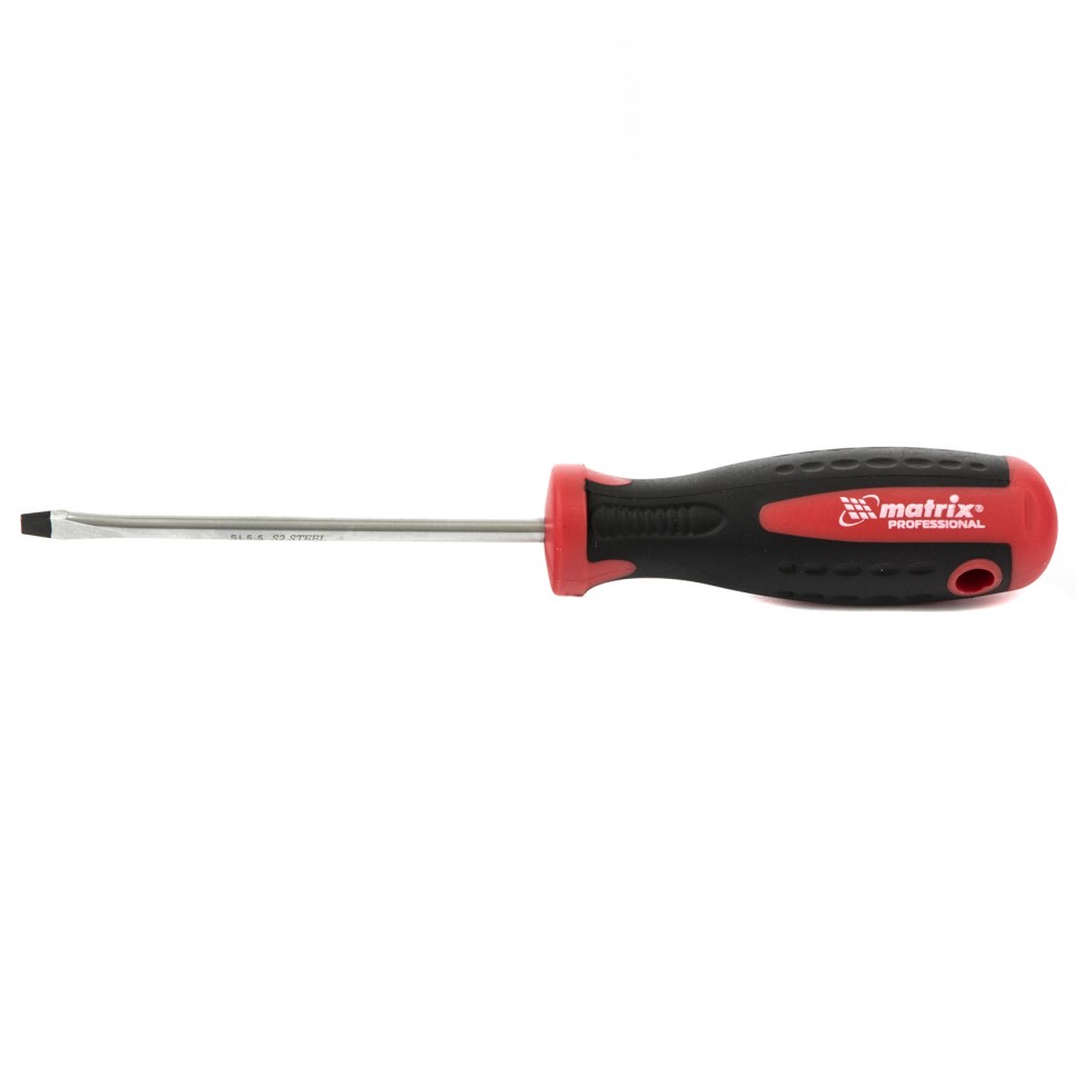 Отвертка Matrix «Profi» 11814, SL5,5 х 100 мм, из стали S2, с двухкомпонентной рукояткой, служит для монтажа и демонтажа крепежа со шлицем Slotted «минус». Профессиональная отвертка станет незаменимым помощником при осуществлении монтажных, строительных и ремонтных работ. Благодаря стержню длиной 100 мм можно закручивать и откручивать крепеж в углублениях.