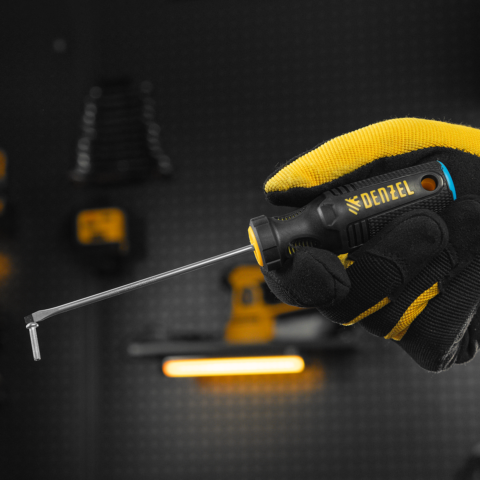 - Удобное хранение — отверстие в рукоятке позволяет подвешивать отвертку на крючок или скобу.
