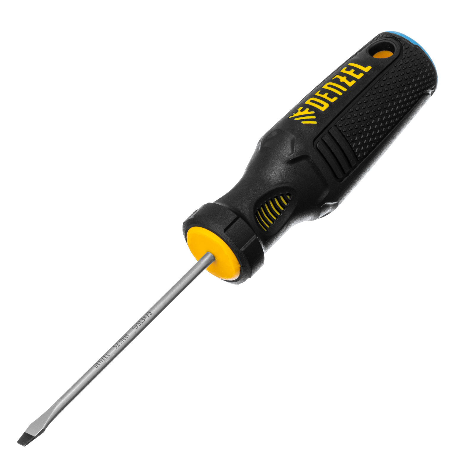 Отвертка Denzel 121887 с трехкомпонентной рукояткой, со стержнем из стали S2, длиной 75 мм, предназначена для монтажа и демонтажа винтов и саморезов с прямым шлицем SL3. Высокоточный намагниченный шлиц крепко фиксируется в головке крепежа. Отвертка выдерживает интенсивное применение, предназначена для выполнения профессиональных ремонтных и монтажных работ.