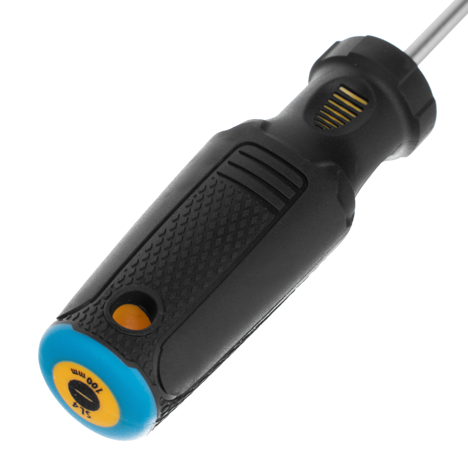 - Удобное хранение — отверстие в рукоятке позволяет подвешивать отвертку на крючок или скобу.