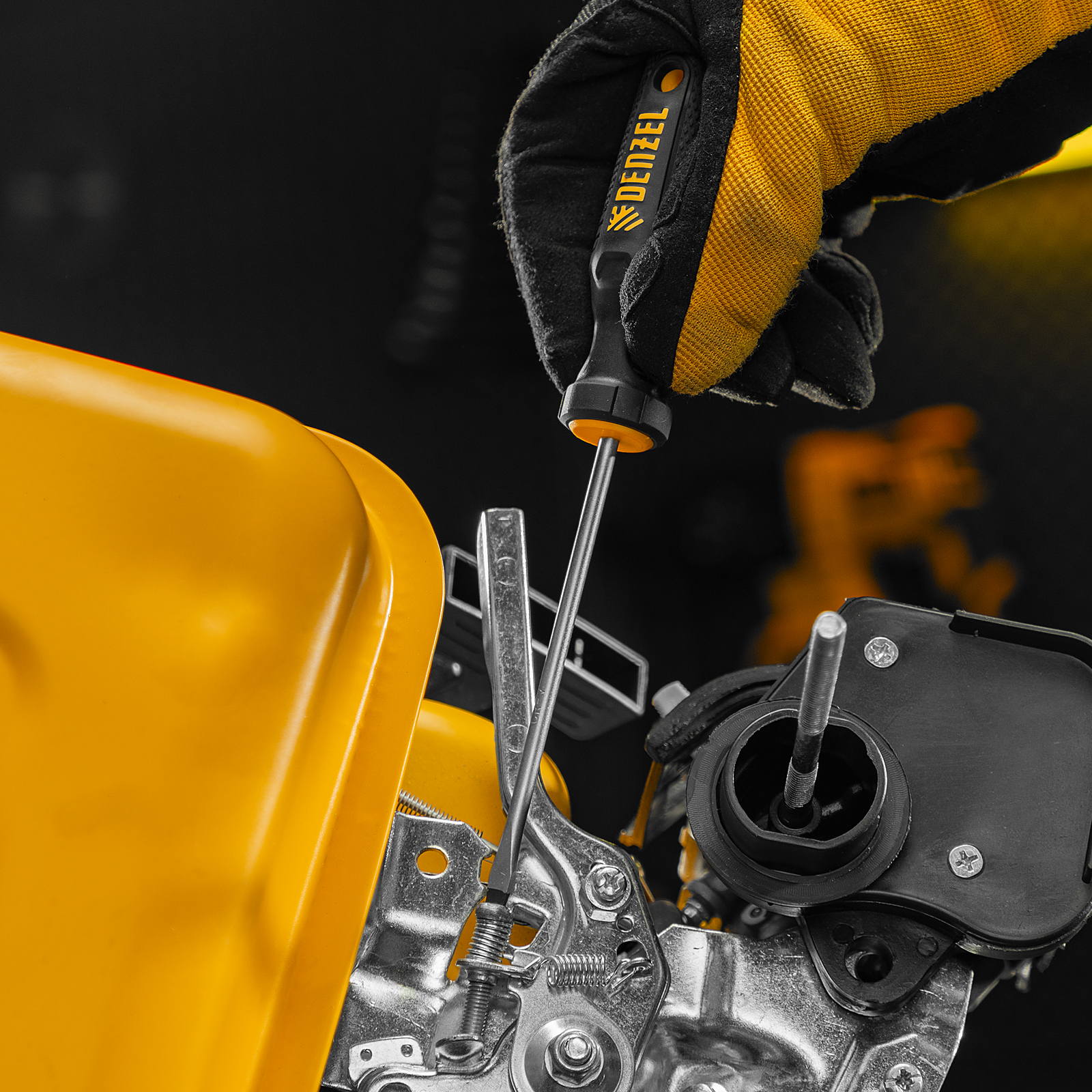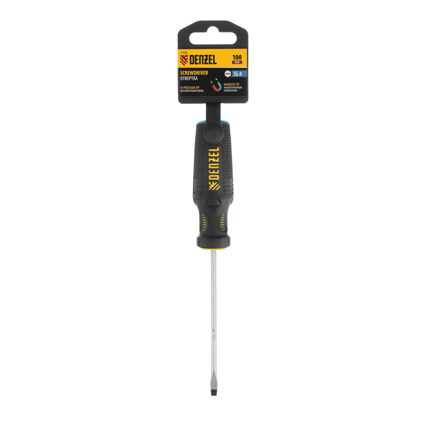 Отвертка SL4 х 100 мм Denzel 12192 из стали CrV, с трехкомпонентной рукояткой, используется для монтажа и демонтажа винтов и саморезов с прямым шлицем Slotted. Намагниченный шлиц крепко фиксируется в головке крепежа. Отвертка выдерживает интенсивное применение и предназначена для выполнения профессиональных ремонтных и монтажных работ.