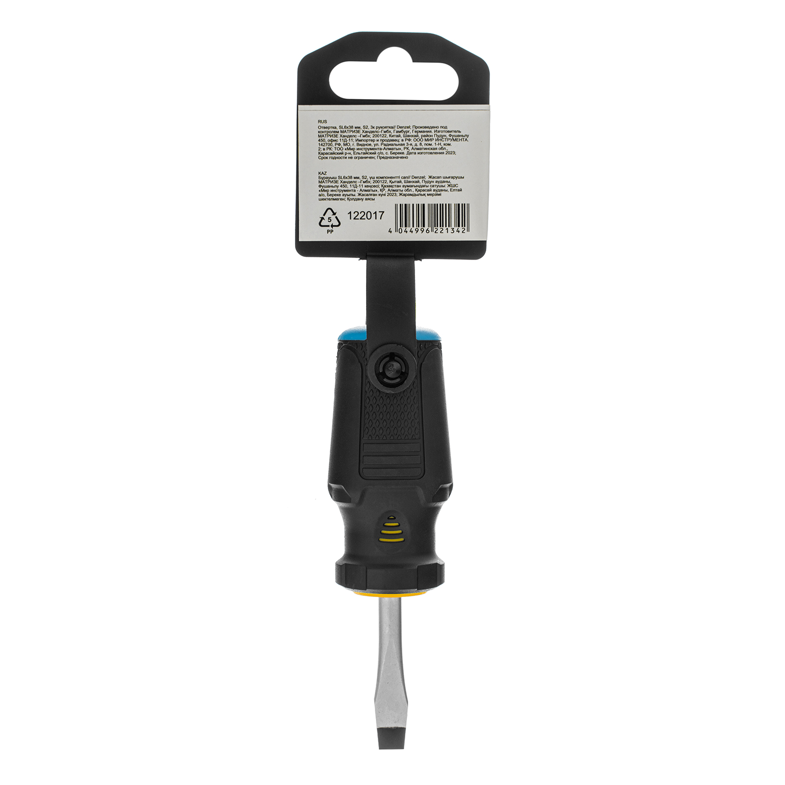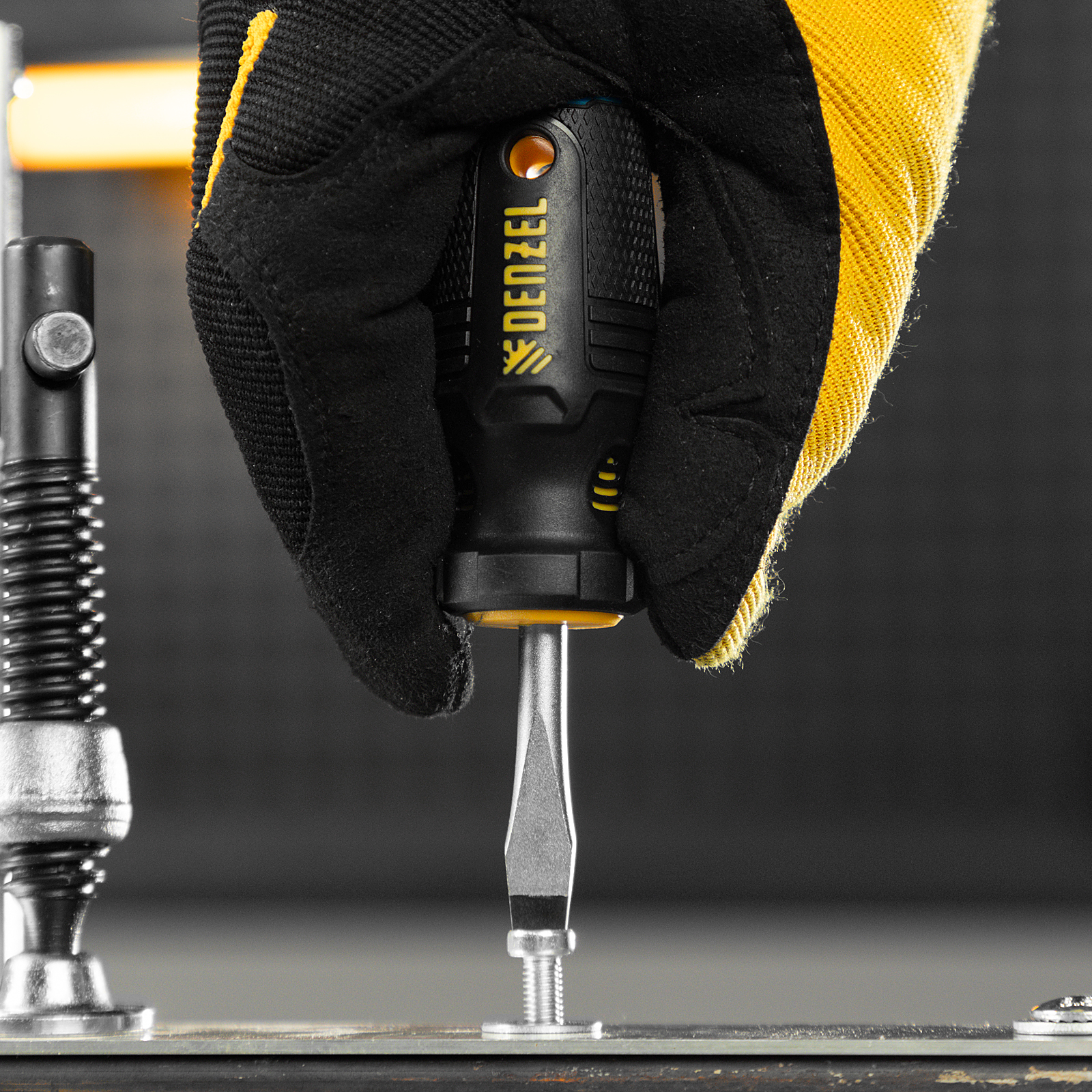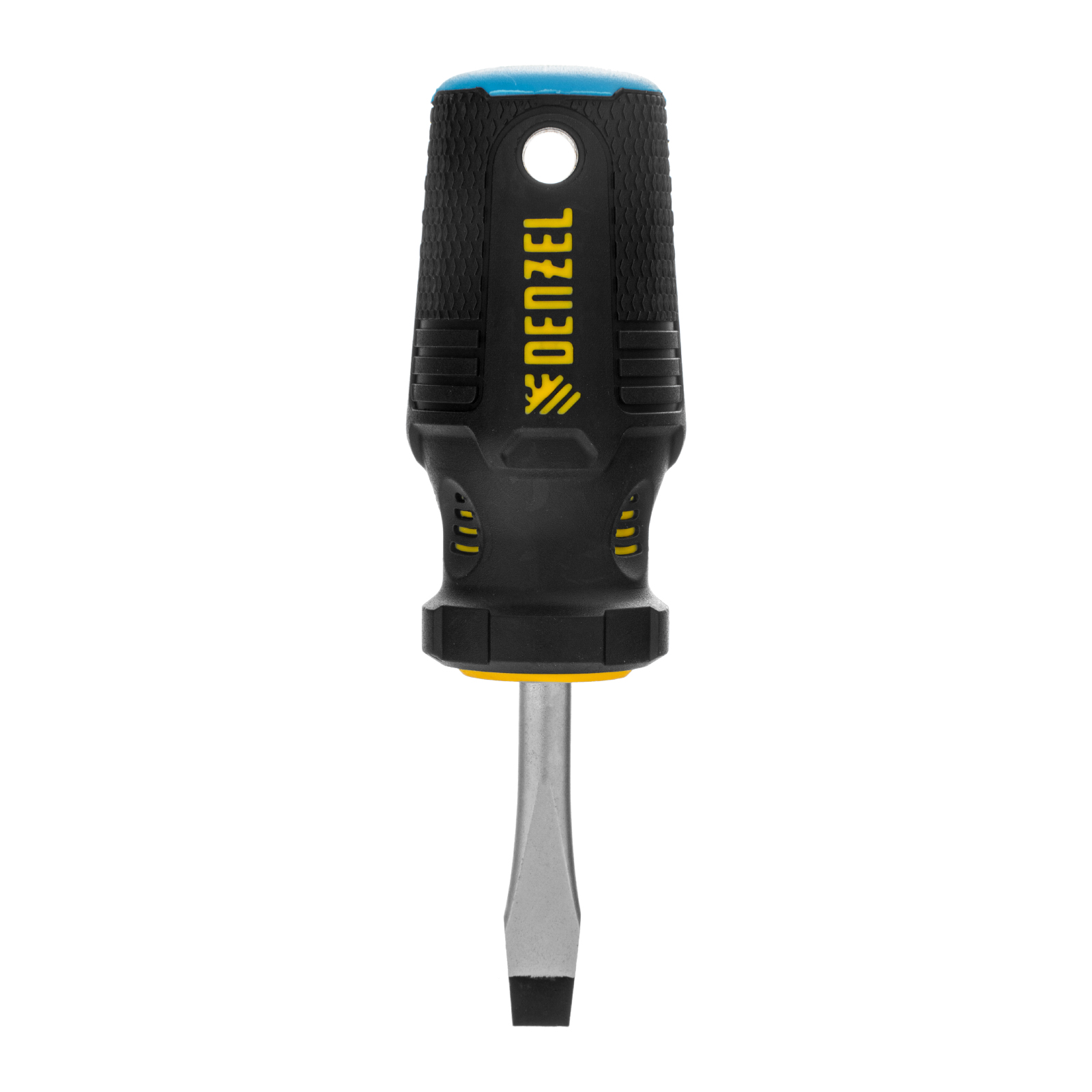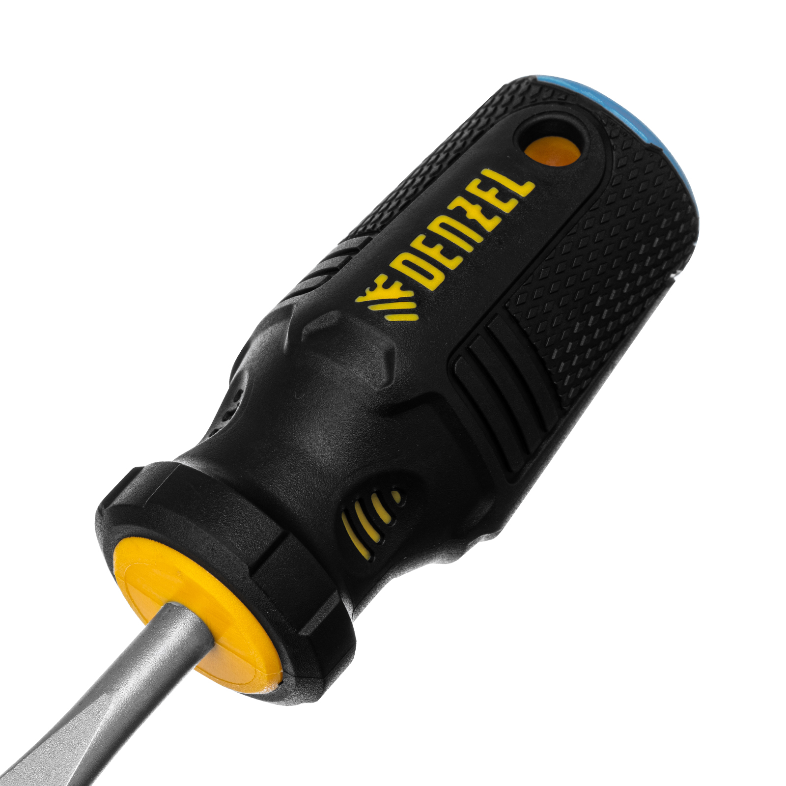 Отвертка Denzel 122017 с трехкомпонентной рукояткой, со стержнем из стали S2, длиной 38 мм, предназначена для монтажа и демонтажа винтов и саморезов с прямым шлицем SL6. Удобна для работы в ограниченном пространстве. Высокоточный намагниченный шлиц крепко фиксируется в головке крепежа. Отвертка выдерживает интенсивное применение, предназначена для выполнения профессиональных ремонтных и монтажных работ.