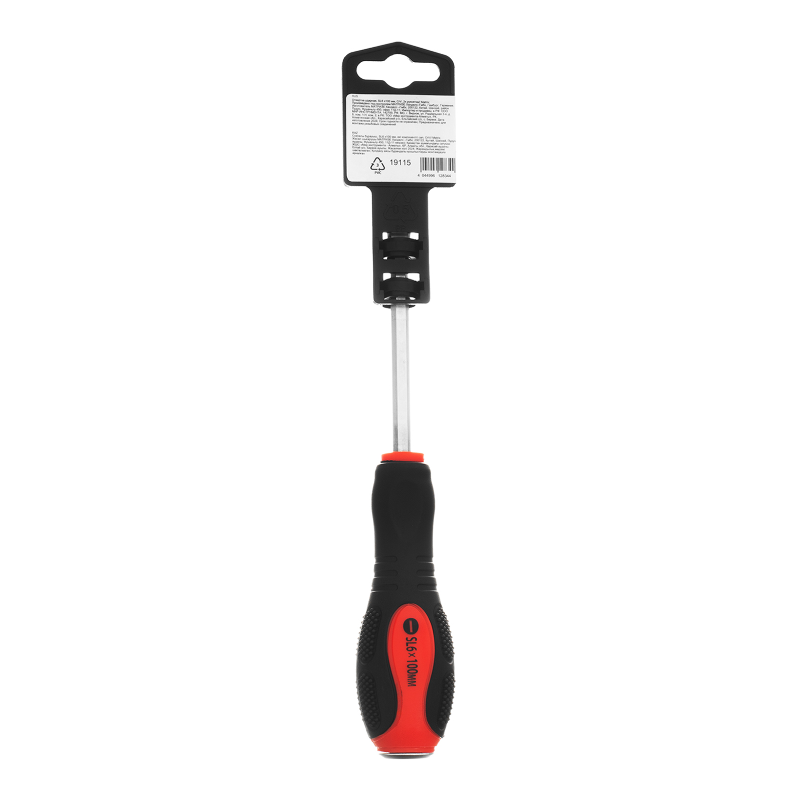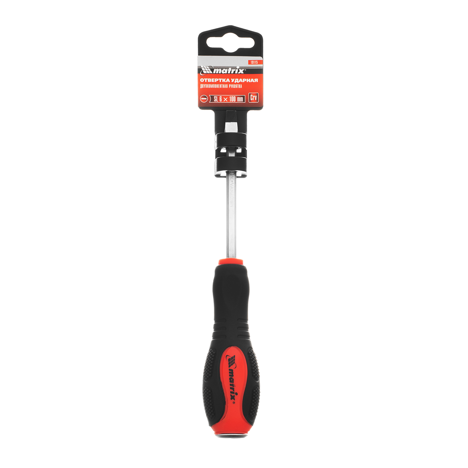 Ударная отвертка Matrix 19115, SL6 x 100 мм, с двухкомпонентной рукояткой, из стали CrV, применяется для монтажа крепежных элементов, а также демонтажа заржавевших или перетянутых резьбовых соединений типа Slotted. Металлический затыльник на рукоятке позволяет работать совместно с молотком или киянкой. Профессиональная отвертка будет полезна на строительной площадке, в мастерской, гараже, пригодится и дома. Стержень длиной 100 мм обеспечивает возможность работы с крепежом в углублениях.