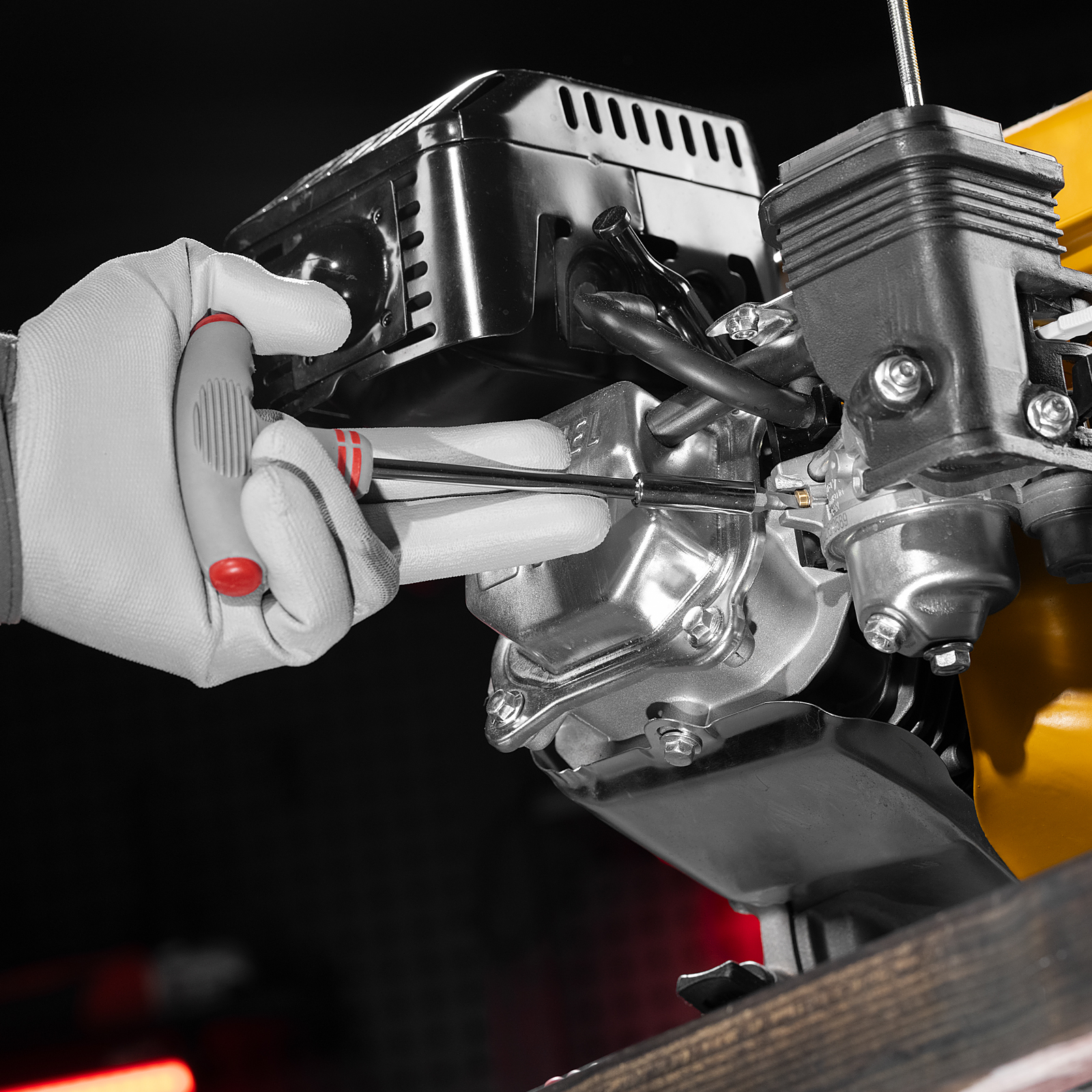 - Комфортная работа — рукоятка с рифленой поверхностью и подпальцевыми выемками обеспечивает надежный хват.
