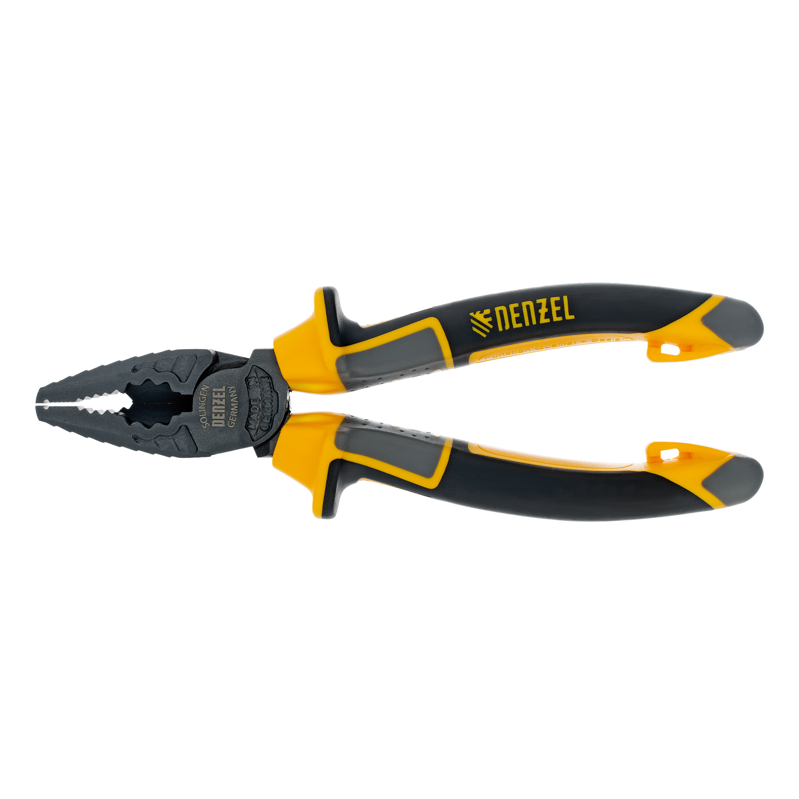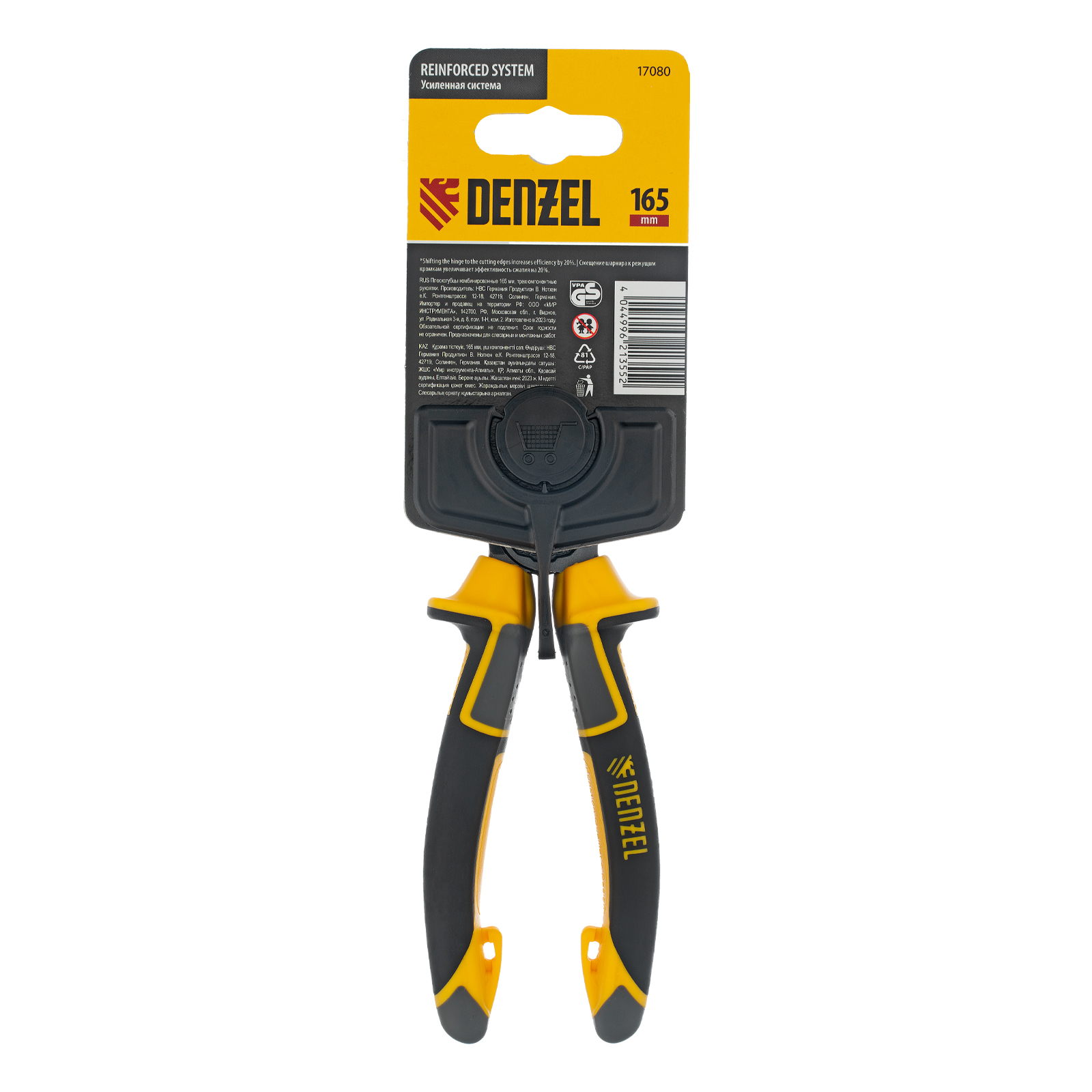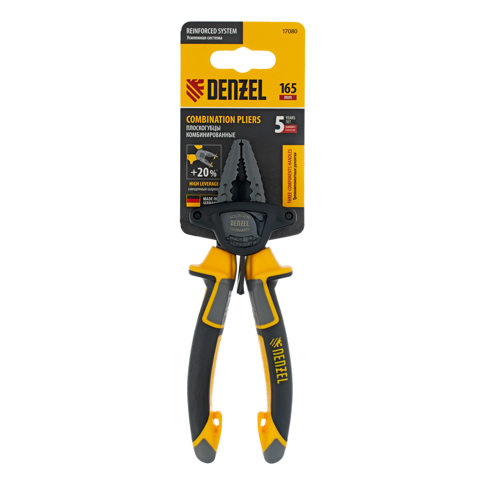 Комбинированные плоскогубцы Denzel 17080 длиной 165 мм, с трехкомпонентными рукоятками, используются для зажима и удержания деталей, сгибания металлических листов. Позволяют также перекусывать мягкую проволоку (алюминиевую, медную, с пределом прочности 220 Н/мм2) диаметром до 4 мм, проволоку средней жесткости и гвозди (750 Н/мм2) диаметром до 3,1 мм, а также жесткую (1800 Н/мм2) толщиной до 2 мм. Имеют внутренние грани специальной формы, предназначенные для использования инструмента в качестве гаечного ключа. Губки с насечками надежно удерживают заготовки. Плоскогубцы пригодятся профессионалу и частному мастеру при проведении слесарных, ремонтных и сборочных работ.
