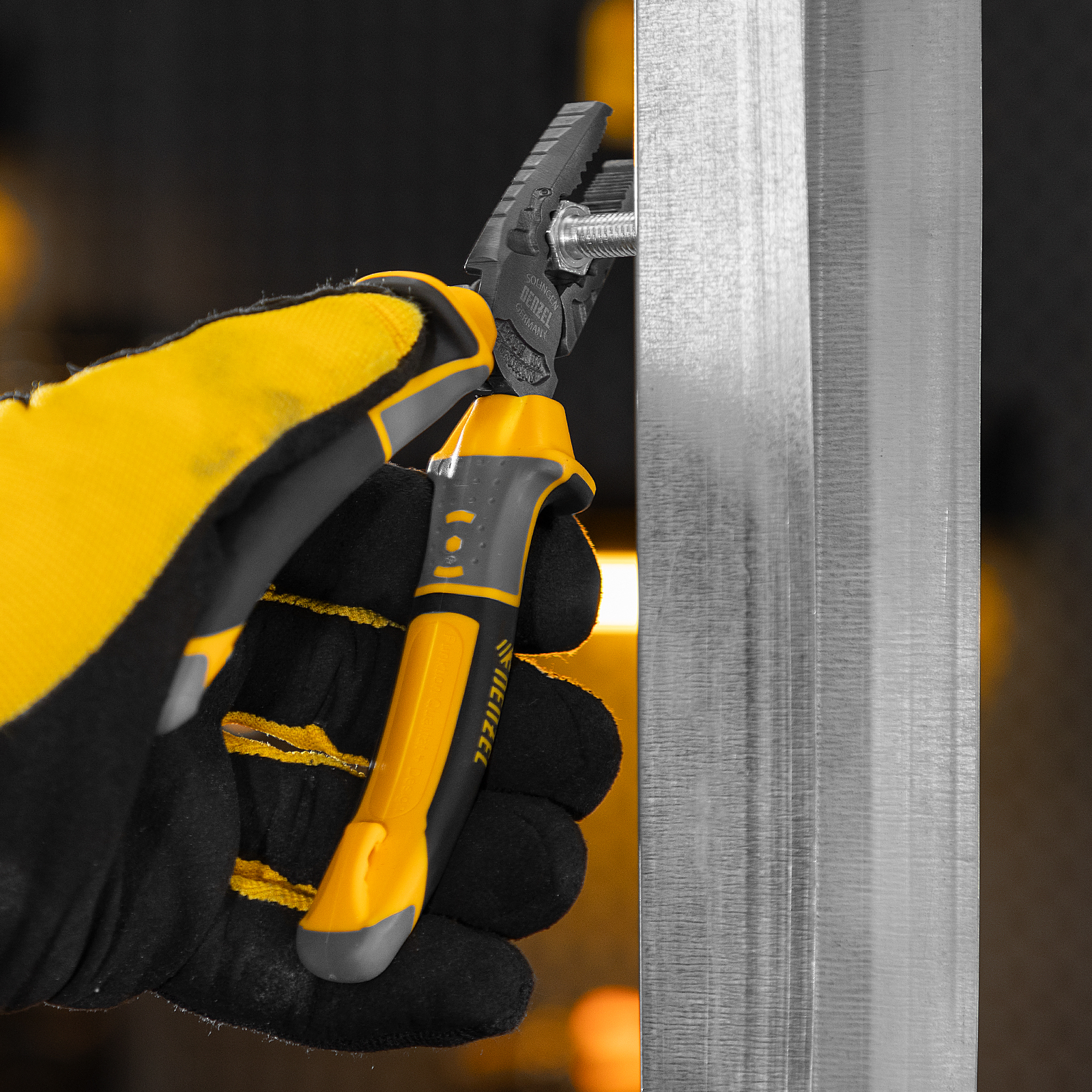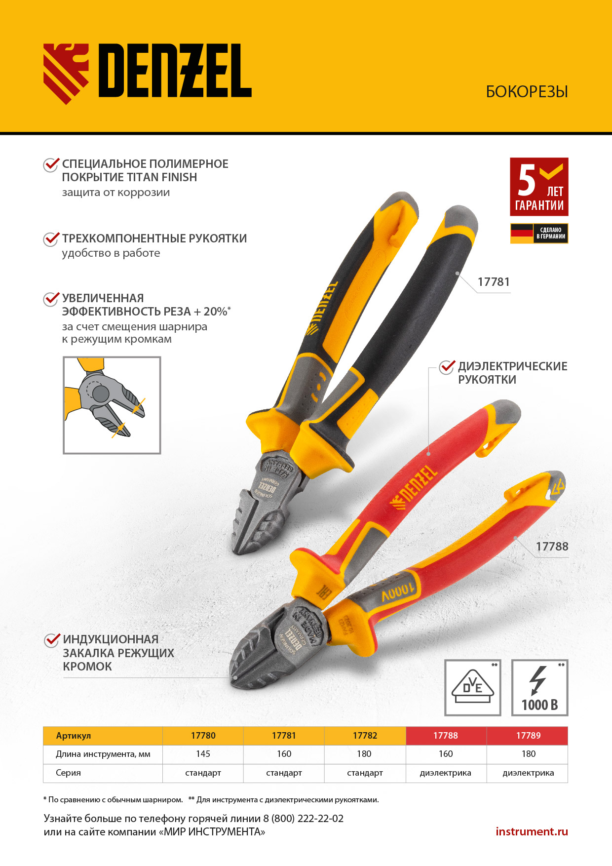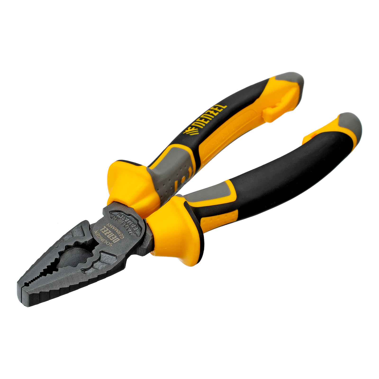 Комбинированные плоскогубцы Denzel 17080 длиной 165 мм, с трехкомпонентными рукоятками, используются для зажима и удержания деталей, сгибания металлических листов. Позволяют также перекусывать мягкую проволоку (алюминиевую, медную, с пределом прочности 220 Н/мм2) диаметром до 4 мм, проволоку средней жесткости и гвозди (750 Н/мм2) диаметром до 3,1 мм, а также жесткую (1800 Н/мм2) толщиной до 2 мм. Имеют внутренние грани специальной формы, предназначенные для использования инструмента в качестве гаечного ключа. Губки с насечками надежно удерживают заготовки. Плоскогубцы пригодятся профессионалу и частному мастеру при проведении слесарных, ремонтных и сборочных работ.