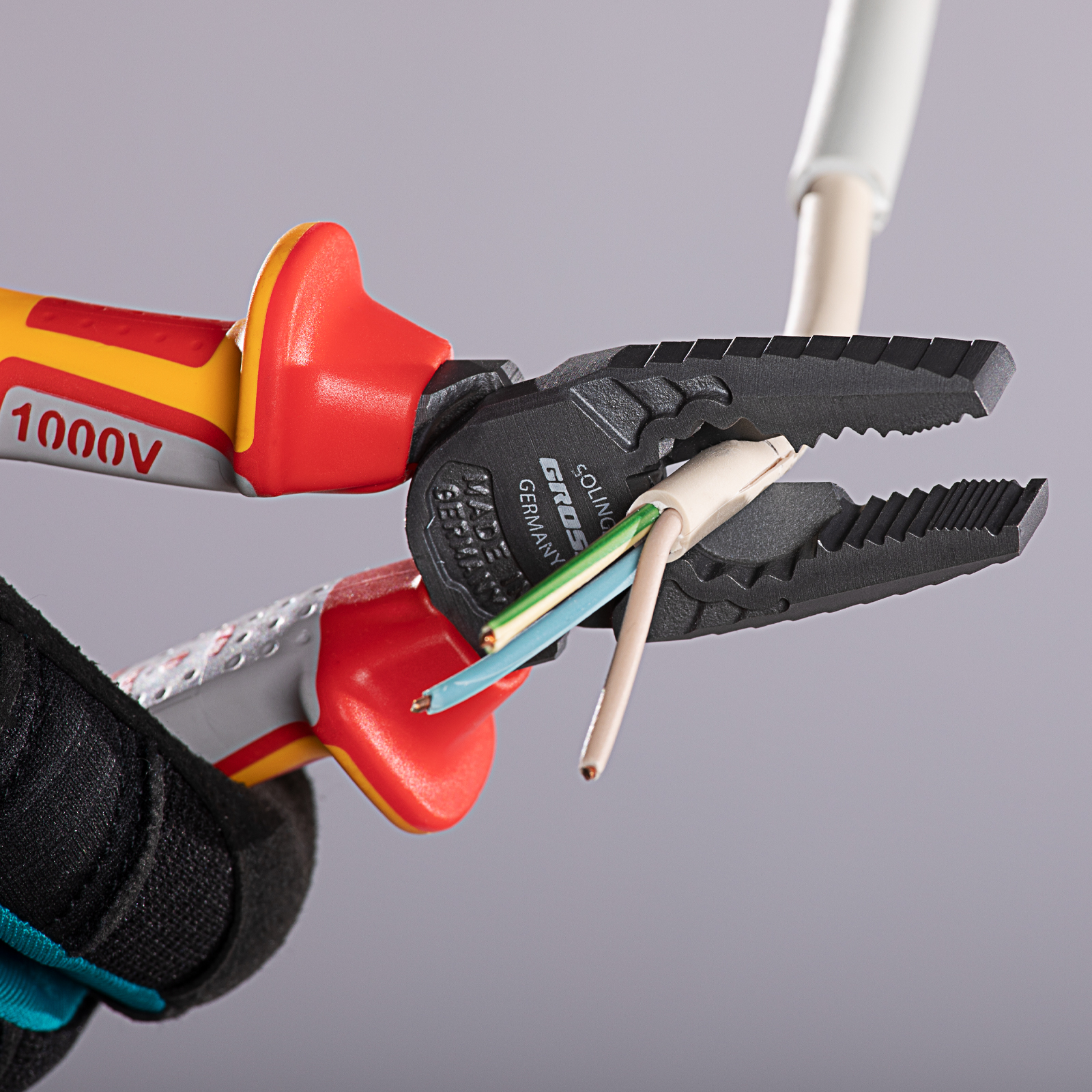 Комбинированные плоскогубцы Gross 16989 длиной 180 мм, с диэлектрическими трехкомпонентными рукоятками, выдерживающими до 1000 В, рассчитаны на работу с токопроводящими элементами. С их помощью можно захватить, перекусить или согнуть мелкие и крупные детали. Также плоскогубцы можно использовать в качестве гаечного ключа. Инструмент станет незаменимым помощником слесарям и монтажникам при работе с различным оборудованием и материалами. Перед началом работ следует отключить напряжение.