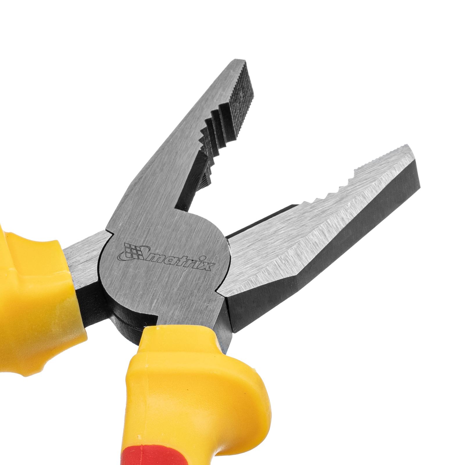 Комбинированные плоскогубцы Matrix Insulated 16905 длиной 200 мм, с двухкомпонентными рукоятками, предназначены для зажимания различных деталей, крепежных элементов, проводов или проволоки. Благодаря специальным выемкам на рабочих поверхностях инструмент может захватывать круглые предметы, а острые насечки не дают губкам соскальзывать. Режущие кромки предназначены для перекусывания проволоки. Двухкомпонентные рукоятки выполнены из диэлектрического материала. Инструмент пригодится во время строительства, ремонта, будет полезен в слесарной мастерской, а также дома или в гараже. Не допускается работа с плоскогубцами при наличии напряжения в сети!