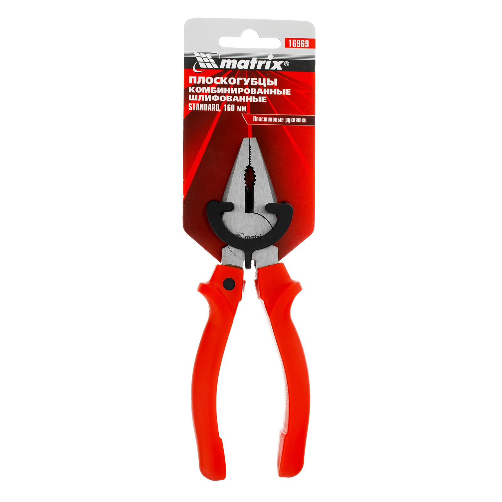Комбинированные шлифованные плоскогубцы Matrix Standard 16969 длиной 160 мм, с пластмассовыми рукоятками, предназначены для захвата и удерживания заготовок, крепежных элементов, проволоки и проводов. Благодаря шлифованной поверхности инструмент обладает повышенной механической прочностью. Форма губок позволяет фиксировать круглые предметы, а режущими кромками можно перекусывать проводки и проволоку. Плоскогубцы применяют в строительном, слесарном и столярном деле, также инструмент полезен во время ремонта автомобилей и в быту.