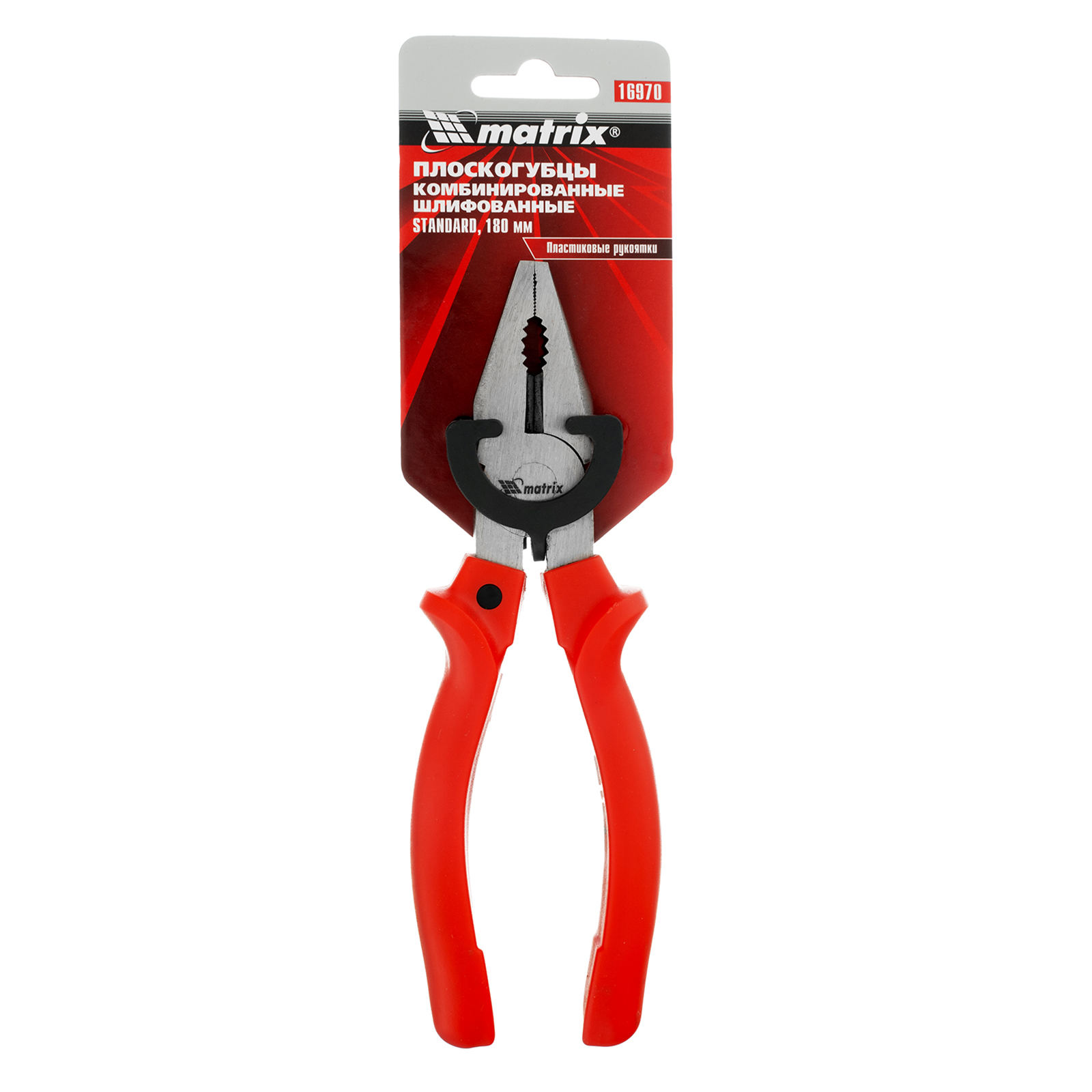 Комбинированные шлифованные плоскогубцы Matrix Standard 16970 длиной 180 мм, с пластмассовыми рукоятками, предназначены для захвата и удерживания заготовок, крепежных элементов, проволоки и проводов. Благодаря шлифованной поверхности инструмент обладает повышенной механической прочностью. Форма губок позволяет фиксировать круглые предметы, а режущими кромками можно перекусывать проводки и проволоку. Плоскогубцы применяют в строительном, слесарном и столярном деле, также инструмент полезен во время ремонта автомобилей и в быту.