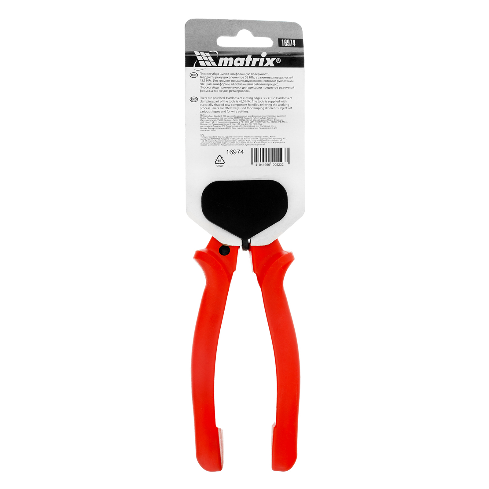 Комбинированные шлифованные плоскогубцы Matrix Standard 16974 длиной 200 мм, с пластмассовыми рукоятками, предназначены для захвата и удерживания заготовок, крепежных элементов, проволоки и проводов. Благодаря шлифованной поверхности инструмент обладает повышенной механической прочностью. Форма губок позволяет фиксировать круглые предметы, а режущими кромками можно перекусывать проводки и проволоку. Плоскогубцы применяют в строительном, слесарном и столярном деле, также инструмент полезен во время ремонта автомобилей и в быту.