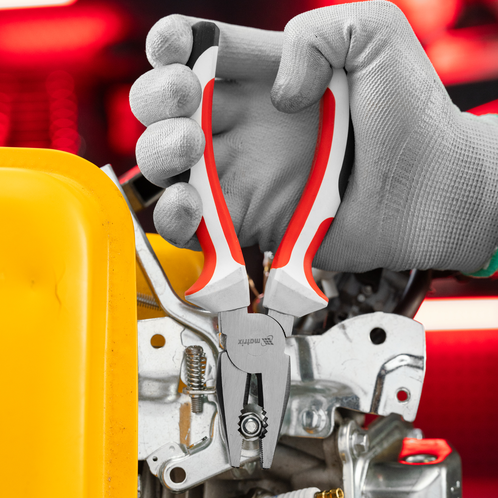 Плоскогубцы Matrix Premium 17070 длиной 160 мм, с трехкомпонентными рукоятками, удобны для фиксации и удерживания небольших деталей, а также для перекусывания проволоки и проводов. Губки с острыми насечками не соскальзывают с поверхности, а специальные выемки позволяют захватывать круглые предметы. Инструмент будет полезен на строительной площадке, в слесарной и столярной мастерской, автосервисе, а также пригодится в домашнем хозяйстве.