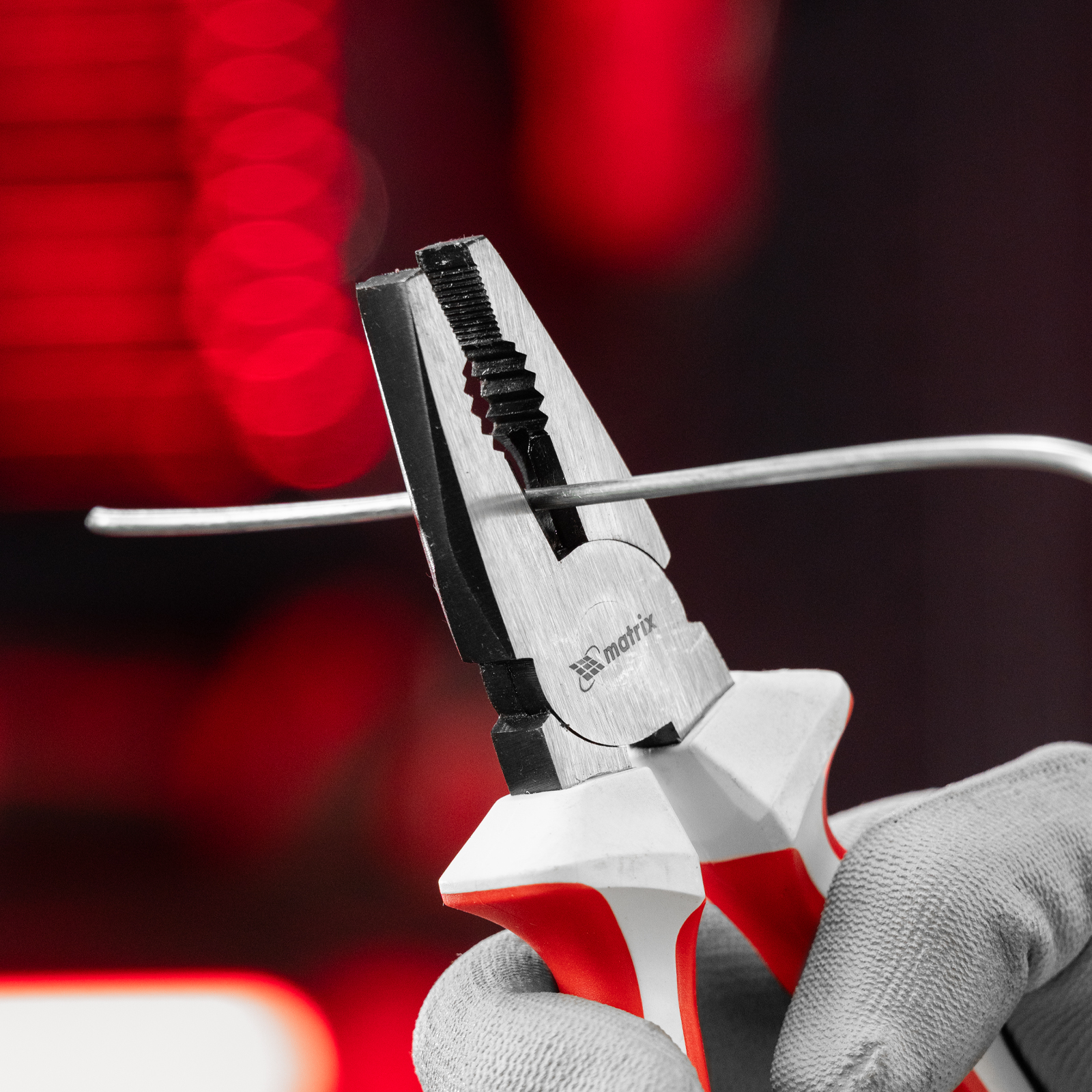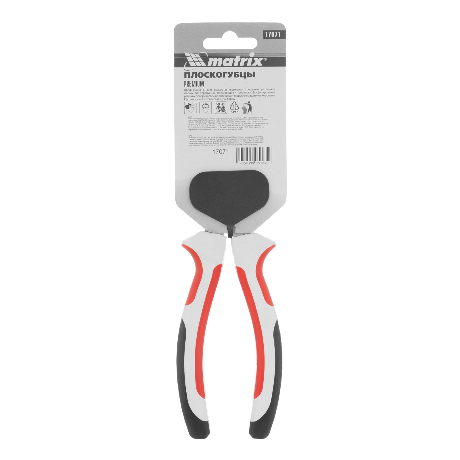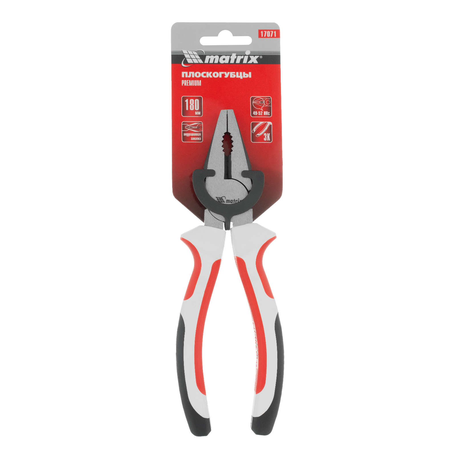 Плоскогубцы Matrix Premium 17071 длиной 180 мм, с трехкомпонентными рукоятками, удобны для фиксации и удерживания небольших деталей, а также для перекусывания проволоки и проводов. Губки с острыми насечками не соскальзывают с поверхности, а специальные выемки позволяют захватывать круглые предметы. Инструмент будет полезен на строительной площадке, в слесарной и столярной мастерской, автосервисе, а также пригодится в домашнем хозяйстве.