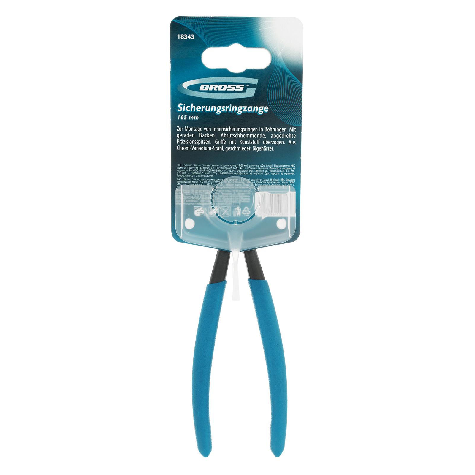 Съемник Gross 18343 длиной 165 мм с изогнутыми губками с прямыми губками работает на сжим и используется для монтажа и демонтажа внутренних стопорных колец диаметром 19-60 мм, размер отверстий которых соответствует диаметру наконечников — 1,8 мм. Изогнутые губки удобны для работы в труднодоступных местах. Инструмент пригодится для ремонта автомобилей, мотоциклов, велосипедов, бытовой техники.