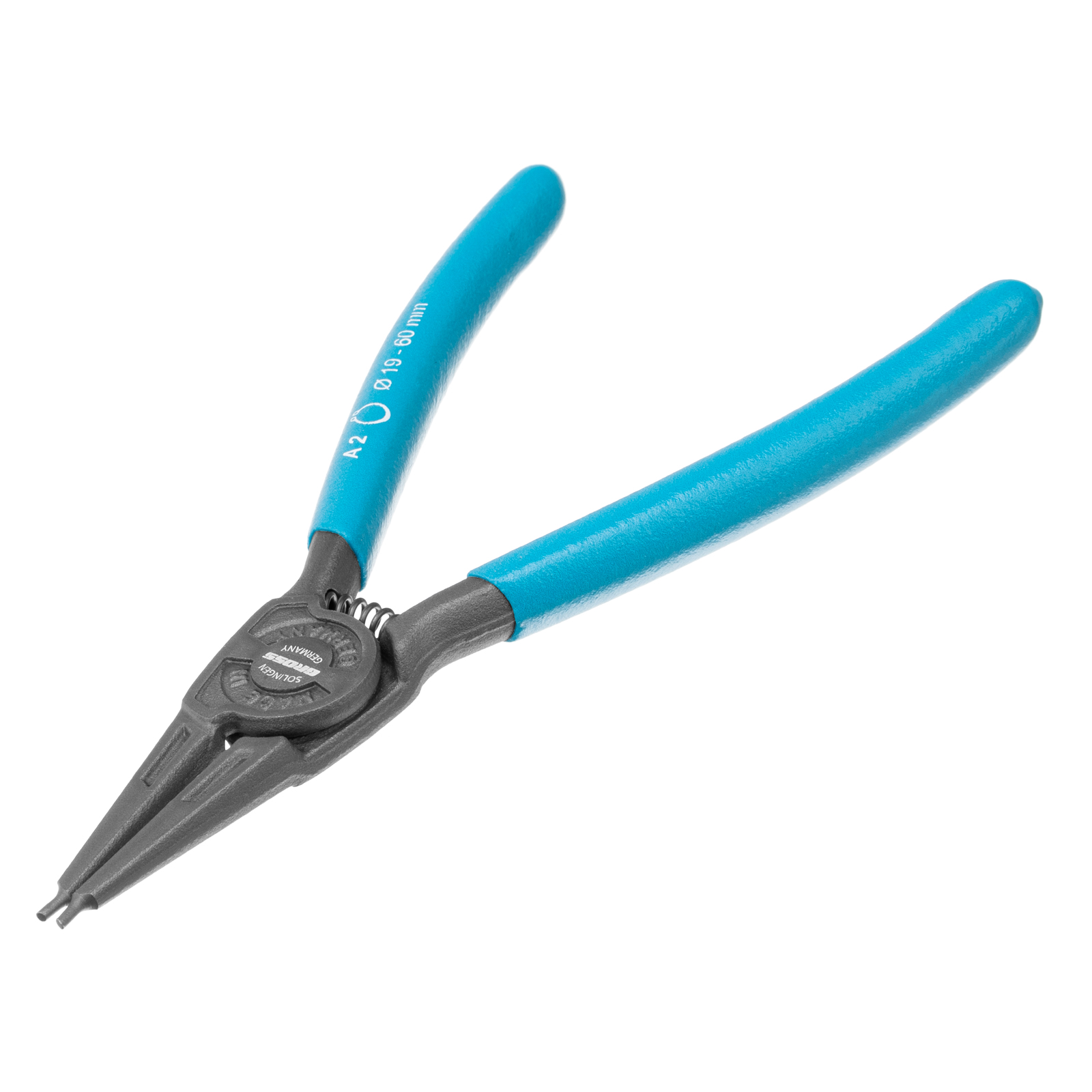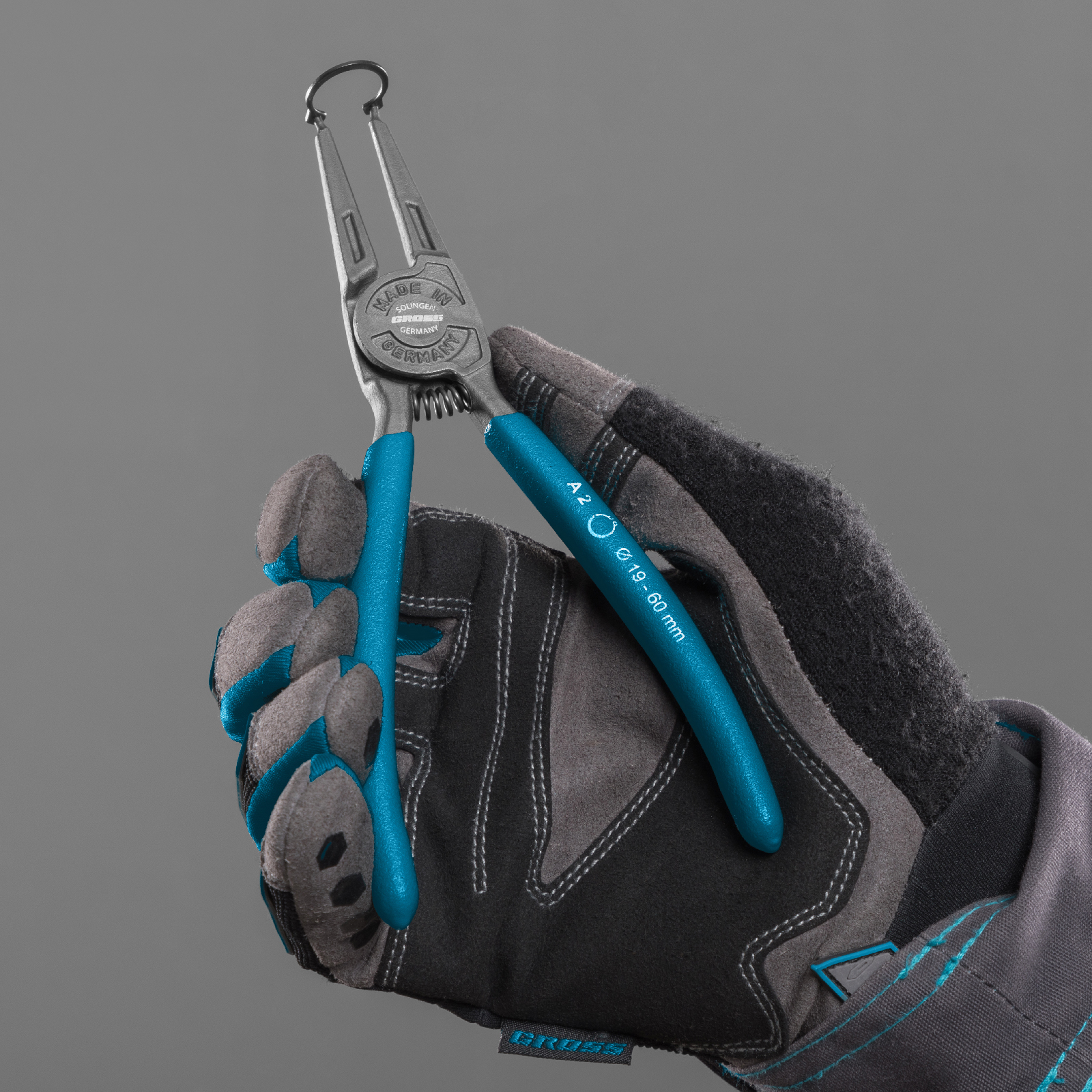 Съемник Gross 18340 длиной 175 мм, с прямыми губками, предназначен для разжима внешних стопорных колец диаметром 19-60 мм для дальнейшей установки их на вал механизма или снятия с него. Съемник применяют для колец с отверстиями — в них вставляются наконечники диаметром 1,8 мм. Инструмент будет полезен в мастерской, автосервисе, а также дома, в гараже или на даче.