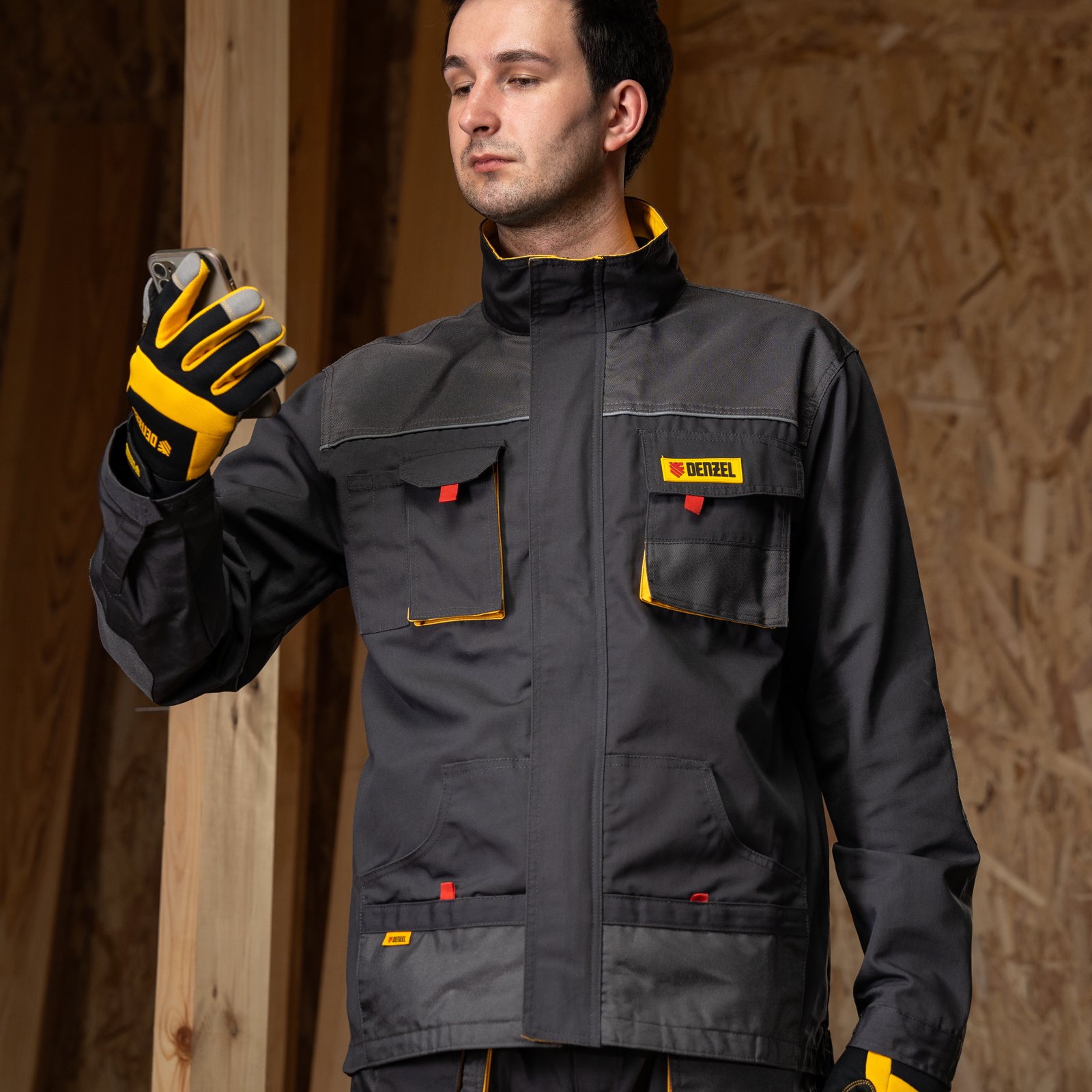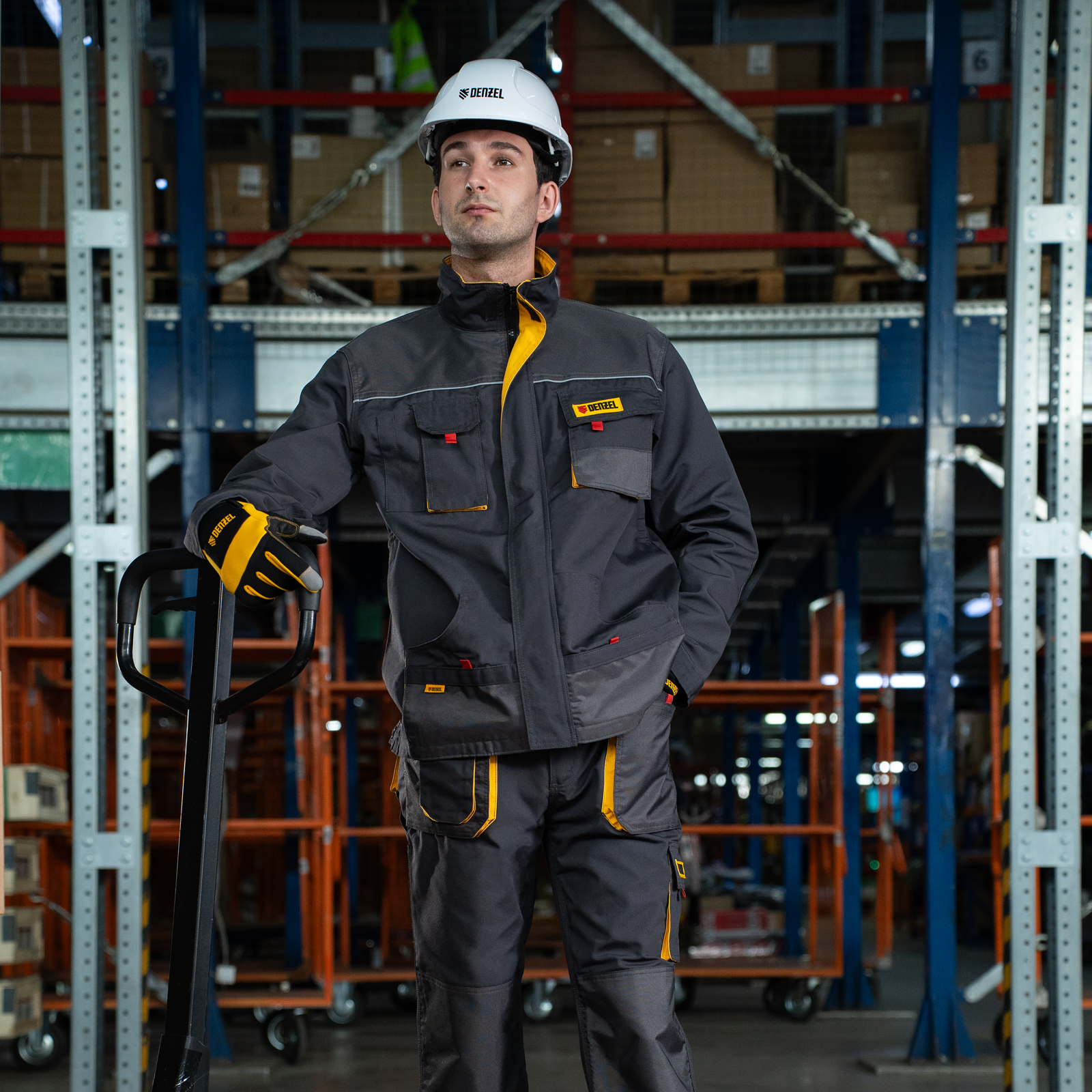Профессиональная рабочая куртка Denzel 90377 размера M защищает пользователя от общих производственных загрязнений, нетоксичной пыли, ветра и незначительных механических воздействий. Рассчитана на рост 173-179 см и предназначена для использования в теплое время года или в отапливаемом помещении. Куртка изготовлена из ткани плотностью 260 г/м² (65% полиэфир, 35% хлопок). За счет наличия хлопковых волокон в составе ткань хорошо пропускает воздух и приятна на теле, полиэфир обеспечивает устойчивость к истиранию. Одежда выполнена в практичном темно-сером цвете.