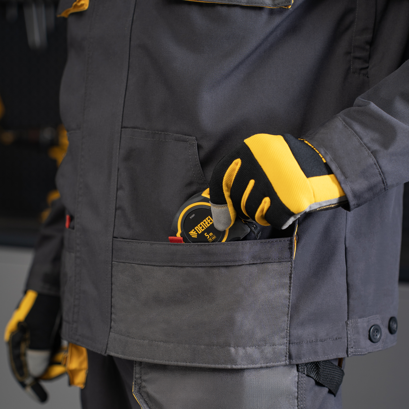 Профессиональная рабочая куртка Denzel 90381 размера XXXL защищает пользователя от общих производственных загрязнений, нетоксичной пыли, ветра и незначительных механических воздействий. Рассчитана на рост 188-191 см и предназначена для использования в теплое время года или в отапливаемом помещении. Куртка изготовлена из ткани плотностью 260 г/м² (65% полиэфир, 35% хлопок). За счет наличия хлопковых волокон в составе ткань хорошо пропускает воздух и приятна на теле, полиэфир обеспечивает устойчивость к истиранию. Одежда выполнена в практичном темно-сером цвете.