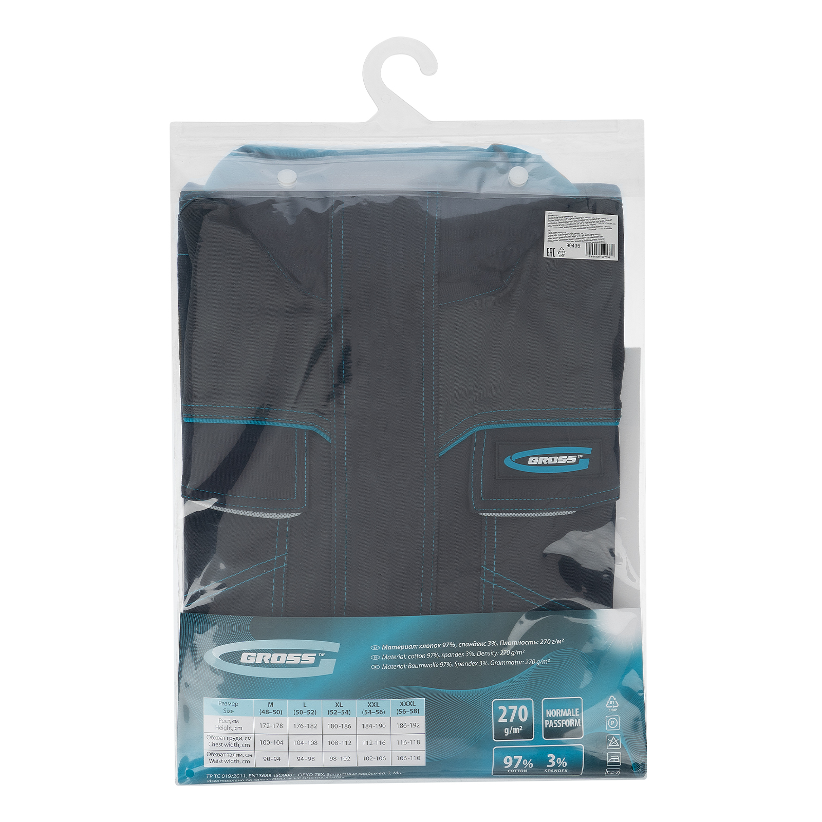 Профессиональная рабочая куртка Gross 90435 размера XXL защищает пользователя от общих производственных загрязнений, нетоксичной пыли, ветра и незначительных механических воздействий. Рассчитана на рост 184-190 см и предназначена для использования в теплое время года или в отапливаемом помещении. Куртка изготовлена из ткани с 97-процентным содержанием хлопка и 3-процентным содержанием спандекса. За счет наличия хлопковых волокон в составе ткань прекрасно пропускает воздух и приятна на теле, а спандекс делает ее более эластичной, поэтому в куртке удобно работать. Одежда выполнена в практичном темно-сером цвете.