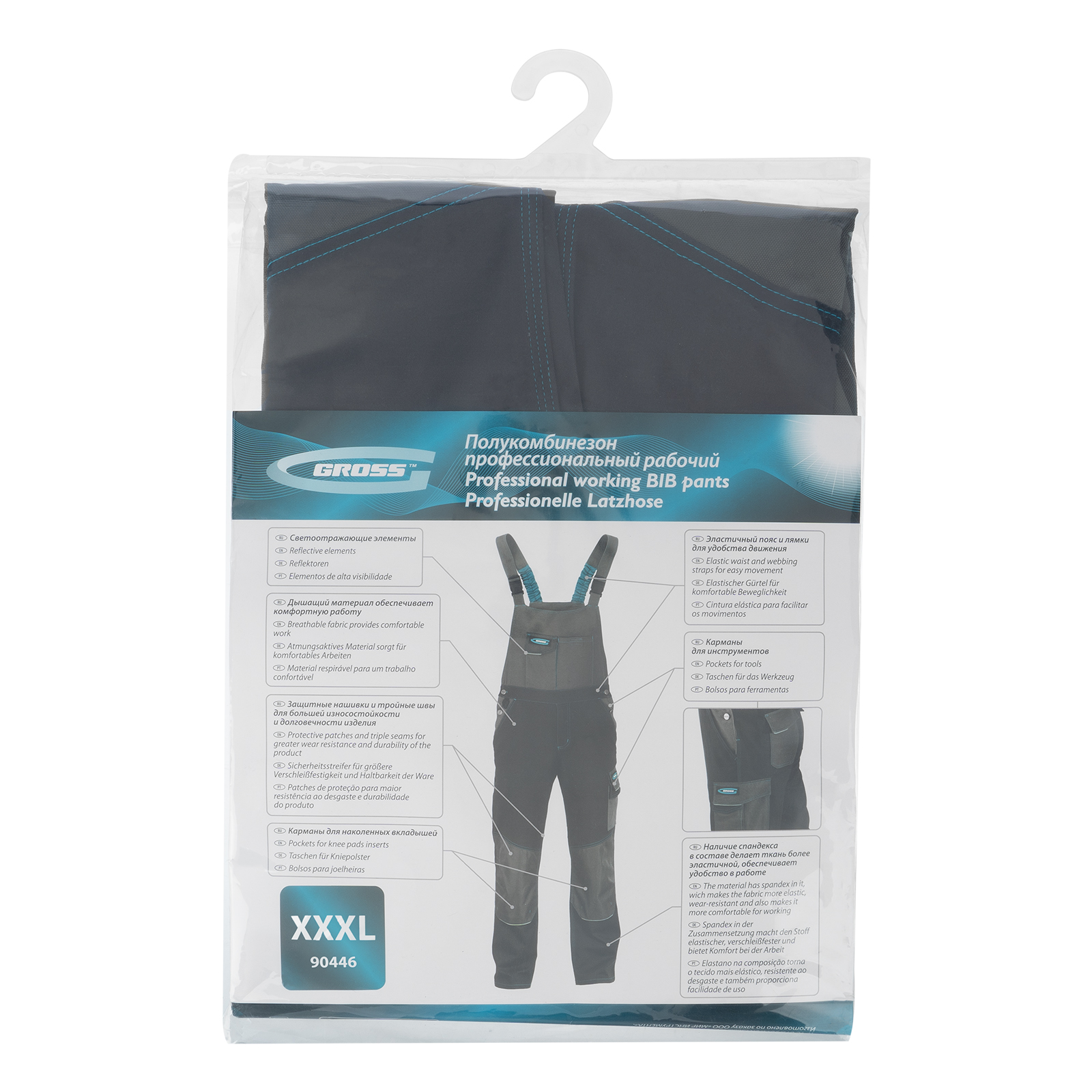 Профессиональные рабочий полукомбинезон Gross 90446 размера XXXL рассчитан на рост 186-192 см и защищает пользователя от общих производственных загрязнений, нетоксичной пыли, ветра и незначительных механических воздействий. Подойдет для выполнения различных видов работ в теплое время года или в отапливаемом помещении. Выполнен в практичном темно-сером цвете. Изготовлен из ткани с 97-процентным содержанием хлопка и 3-процентным содержанием спандекса. За счет наличия хлопковых волокон в составе ткань прекрасно пропускает воздух и приятна на теле, а спандекс делает ее более эластичной, поэтому в полукомбинезоне удобно работать.