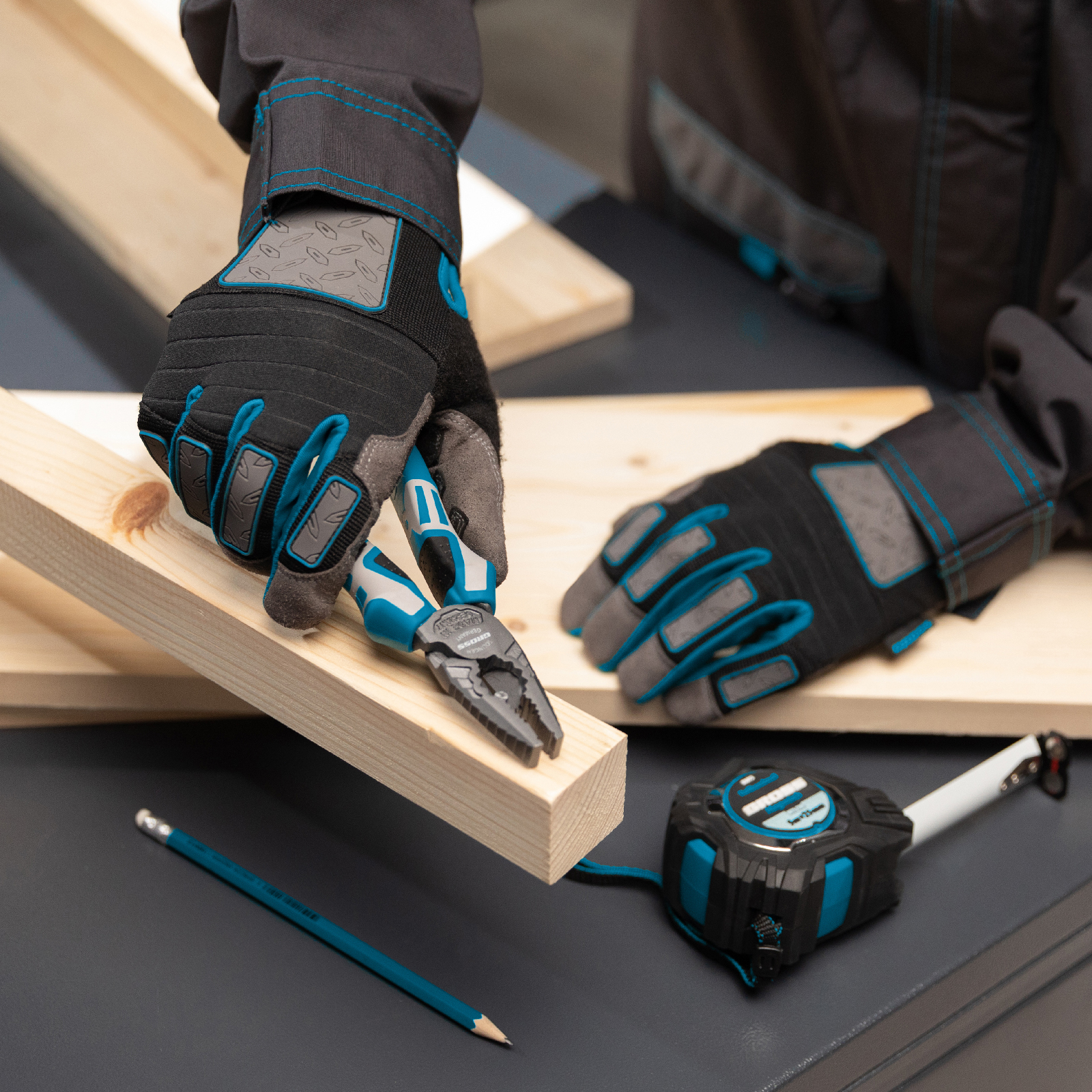 - Износостойкость — благодаря прокладкам на пальцах и формованной накладке на ладонной части перчатки защищены от протирания.