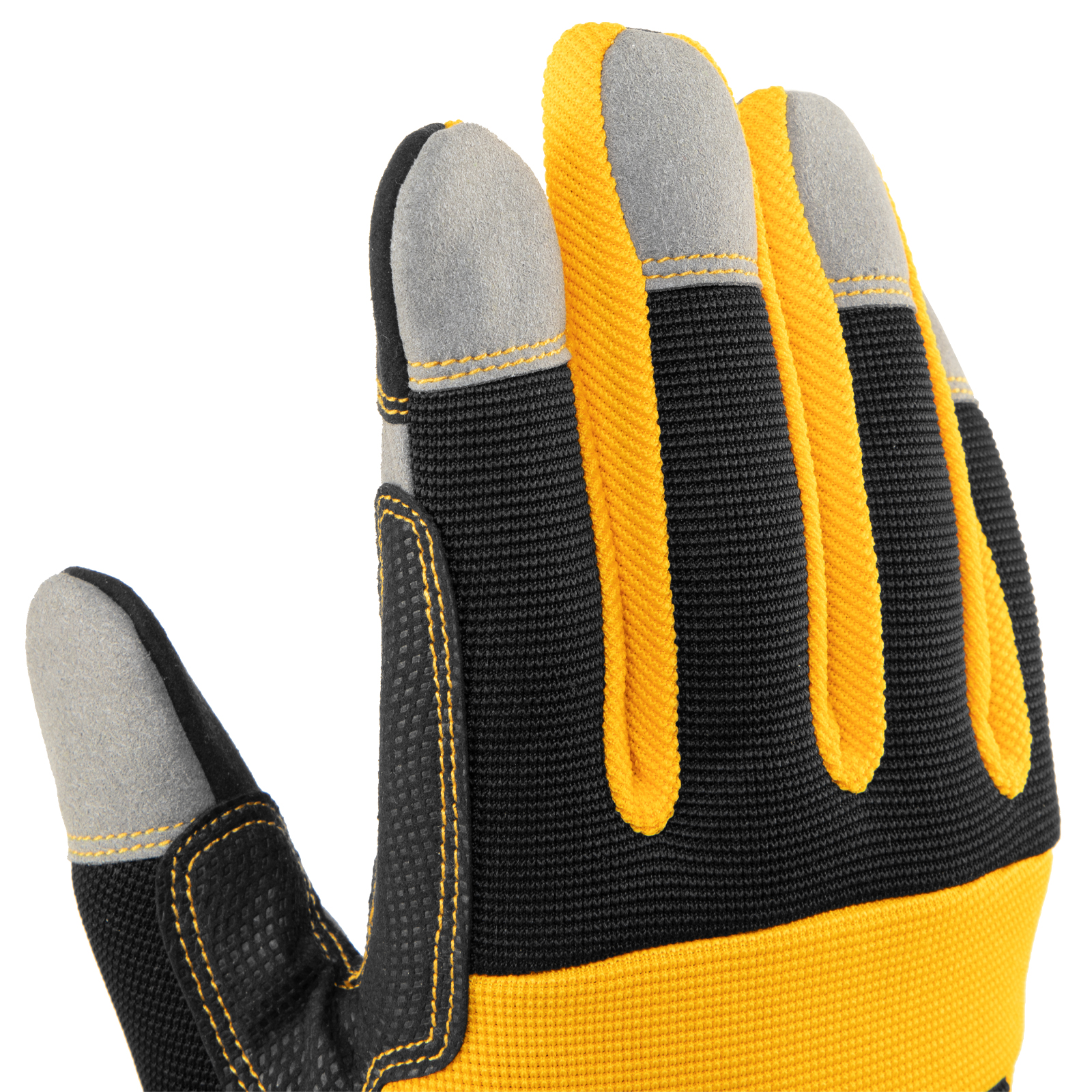Универсальные усиленные перчатки Denzel 67990 размера 9 используются для работы со слесарным инструментом. Надежно защищают кожу рук от царапин и мозолей. Пригодятся частному мастеру и профессионалу в мастерской, дома или в гараже.