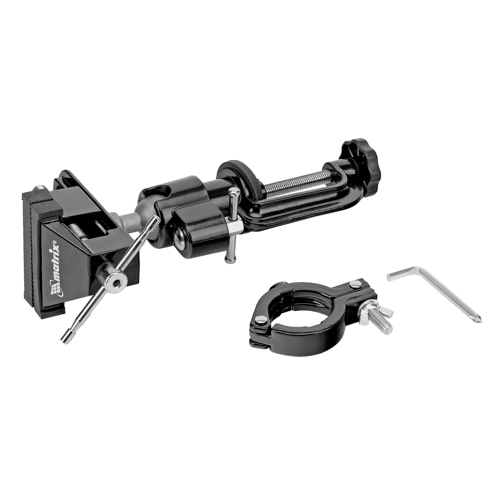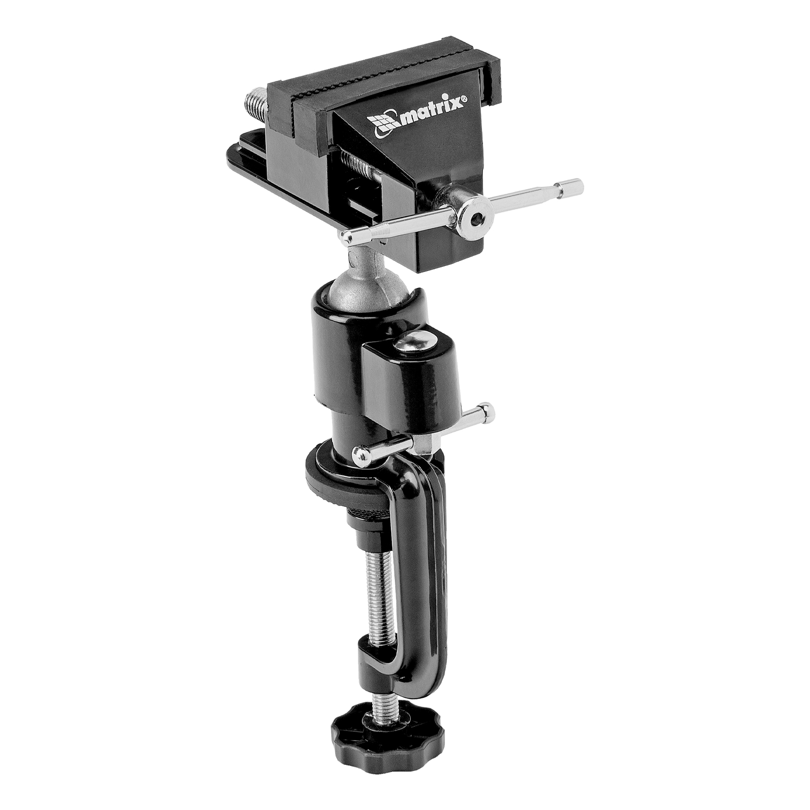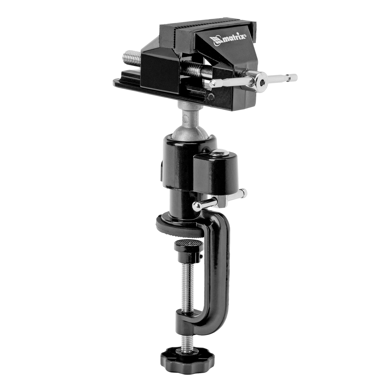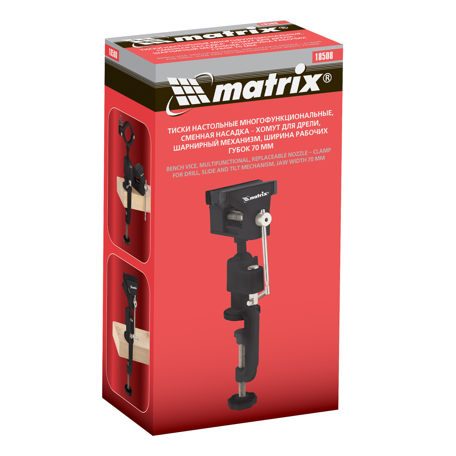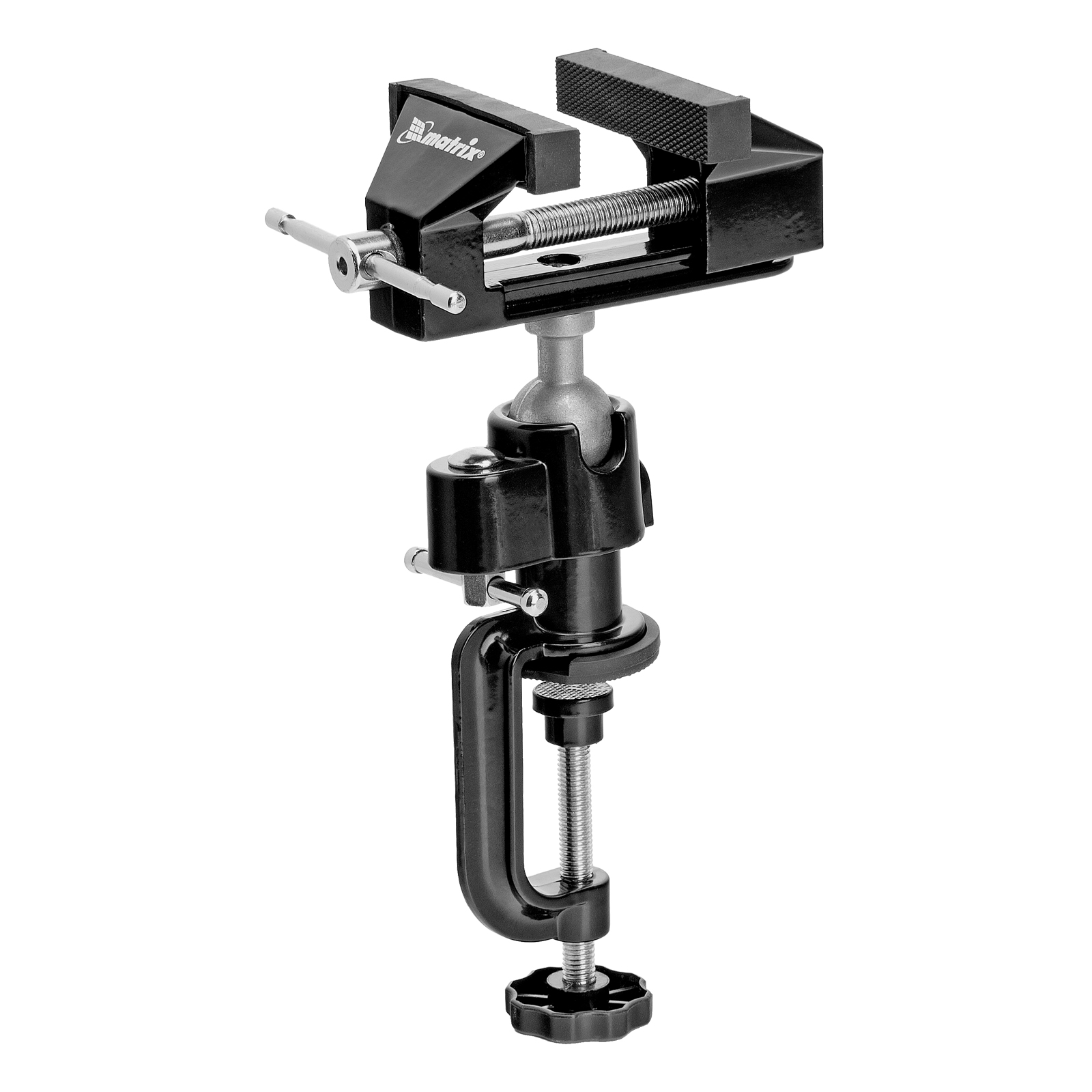 Многофункциональные настольные тиски Matrix 18508 с шириной губок 70 мм, сменной насадкой-хомутом для дрели и шарнирным механизмом имеют рабочий ход 50 мм. Данный слесарный инструмент оптимально подходит для закрепления небольших заготовок. Тиски пригодятся при обработке деталей в процессе моделирования, ремонта бытовой техники и других тонких работ.