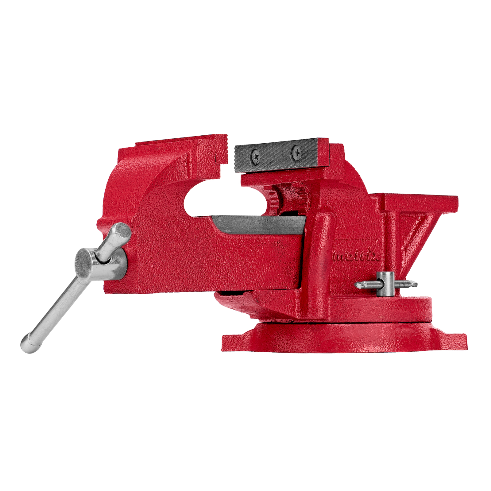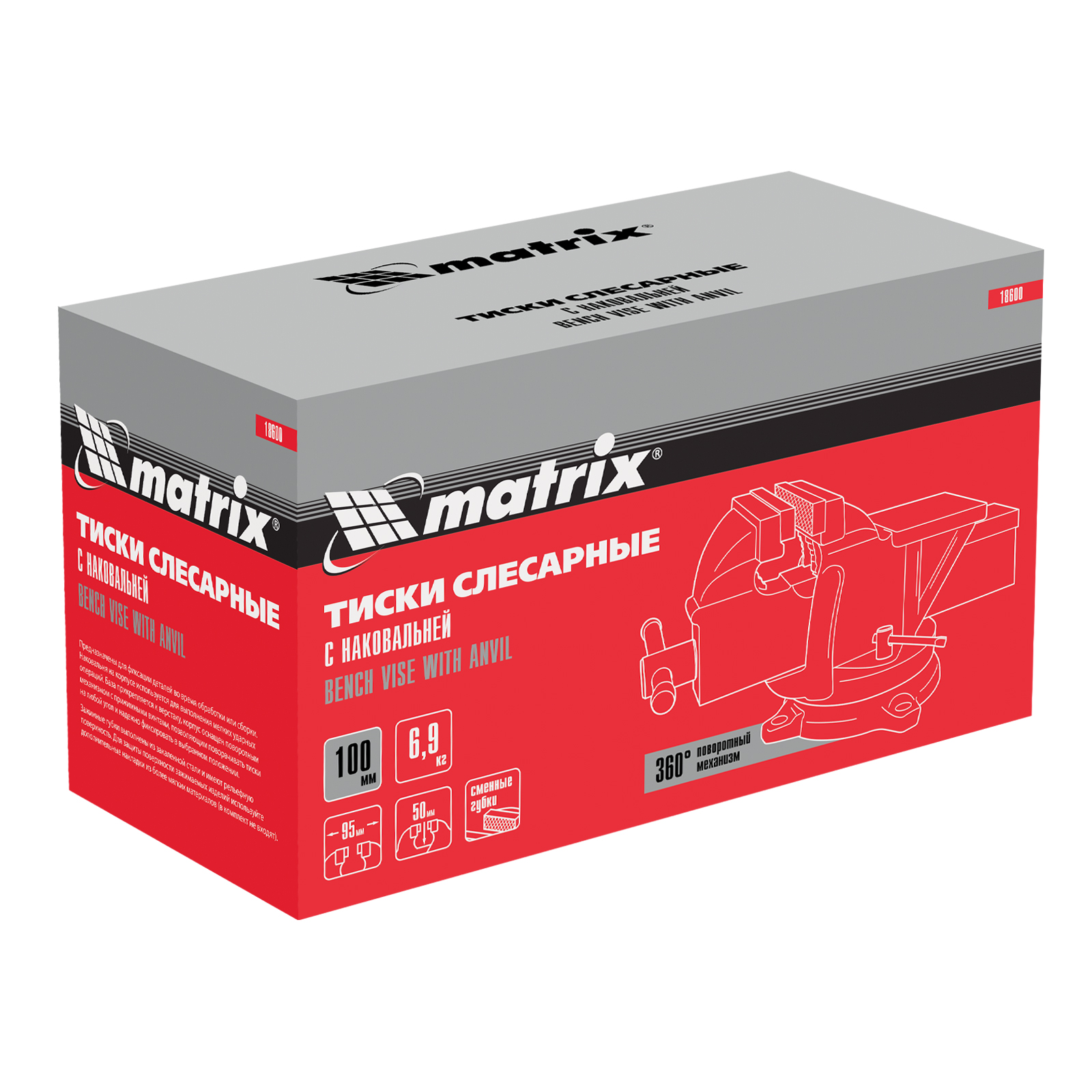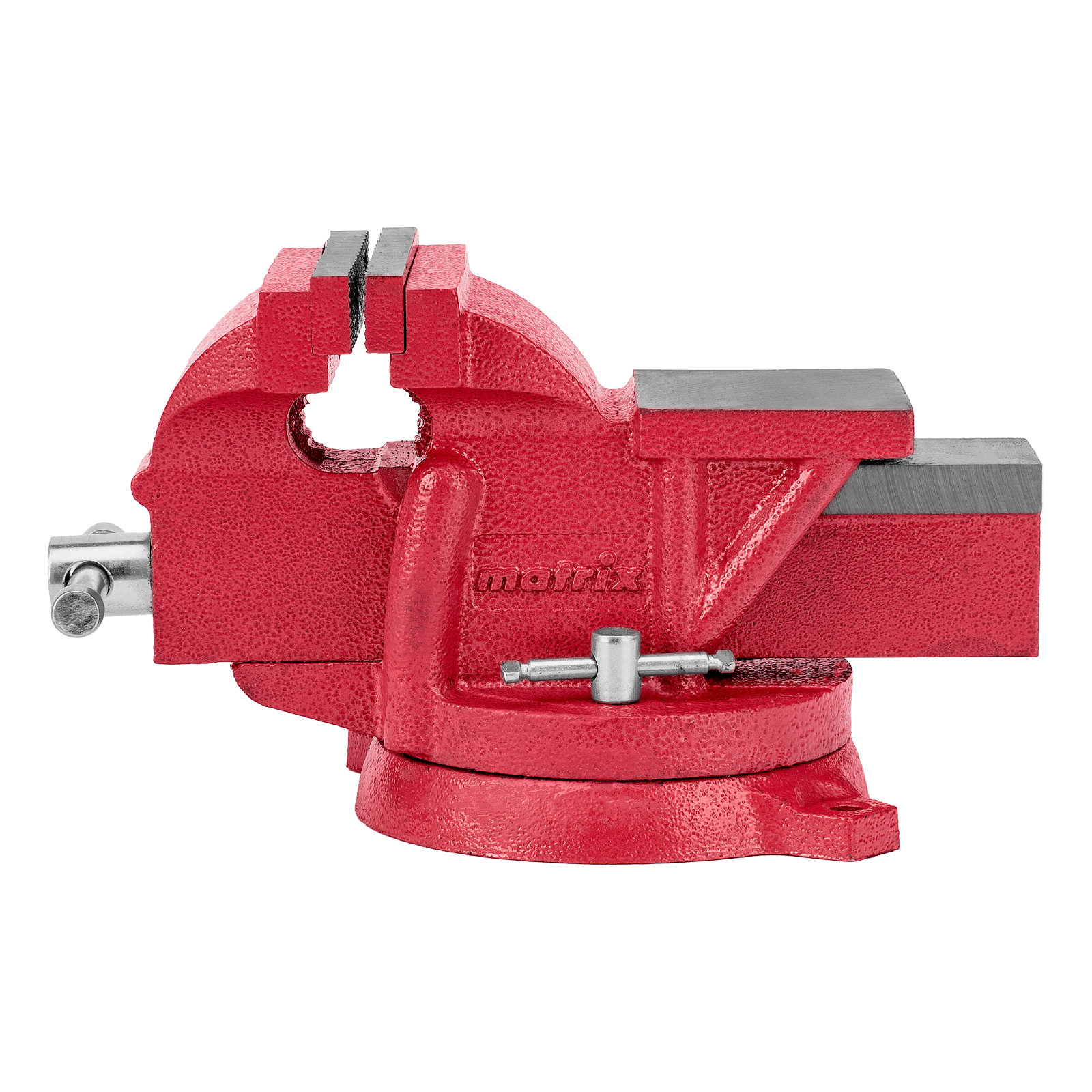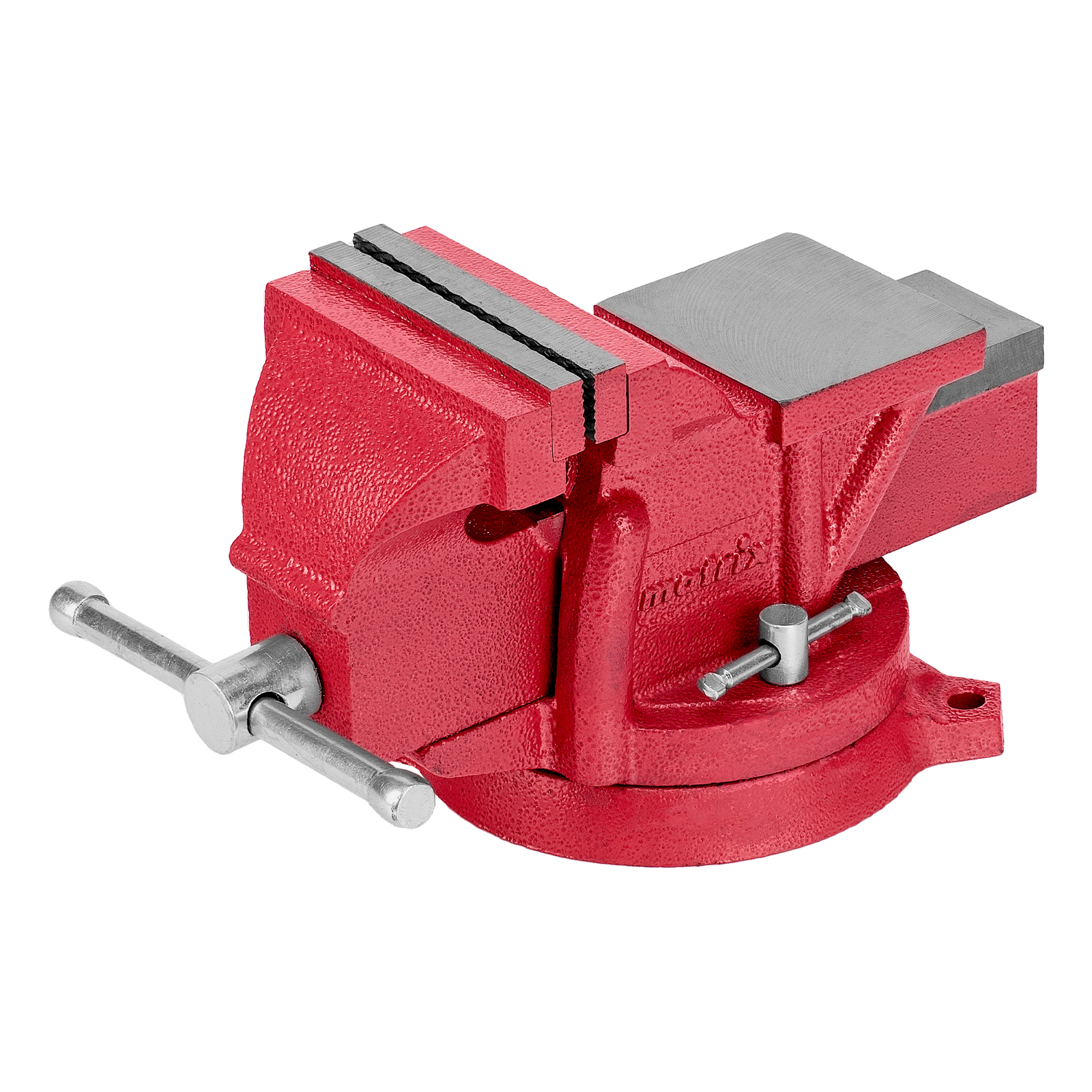 Поворотные слесарные тиски Matrix 18600 с наковальней и губками шириной 100 мм имеют рабочий ход 95 мм и предназначены для захвата и фиксации различных деталей. Поворотный механизм с прижимными винтами позволяет вращать тиски на 360° и фиксировать их в выбранном положении для удобной обработки заготовок с разных сторон. Инструмент используется для шлифовки, сверления и проведения других работ. Будет полезен в мастерской и гараже.