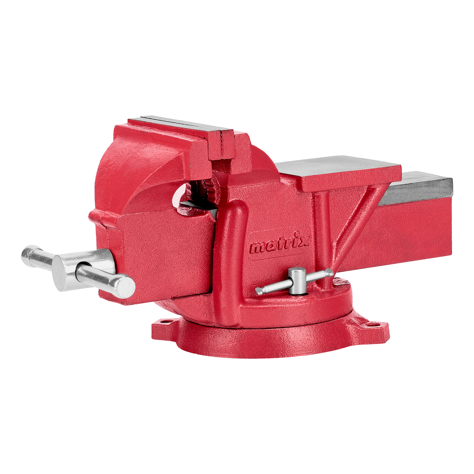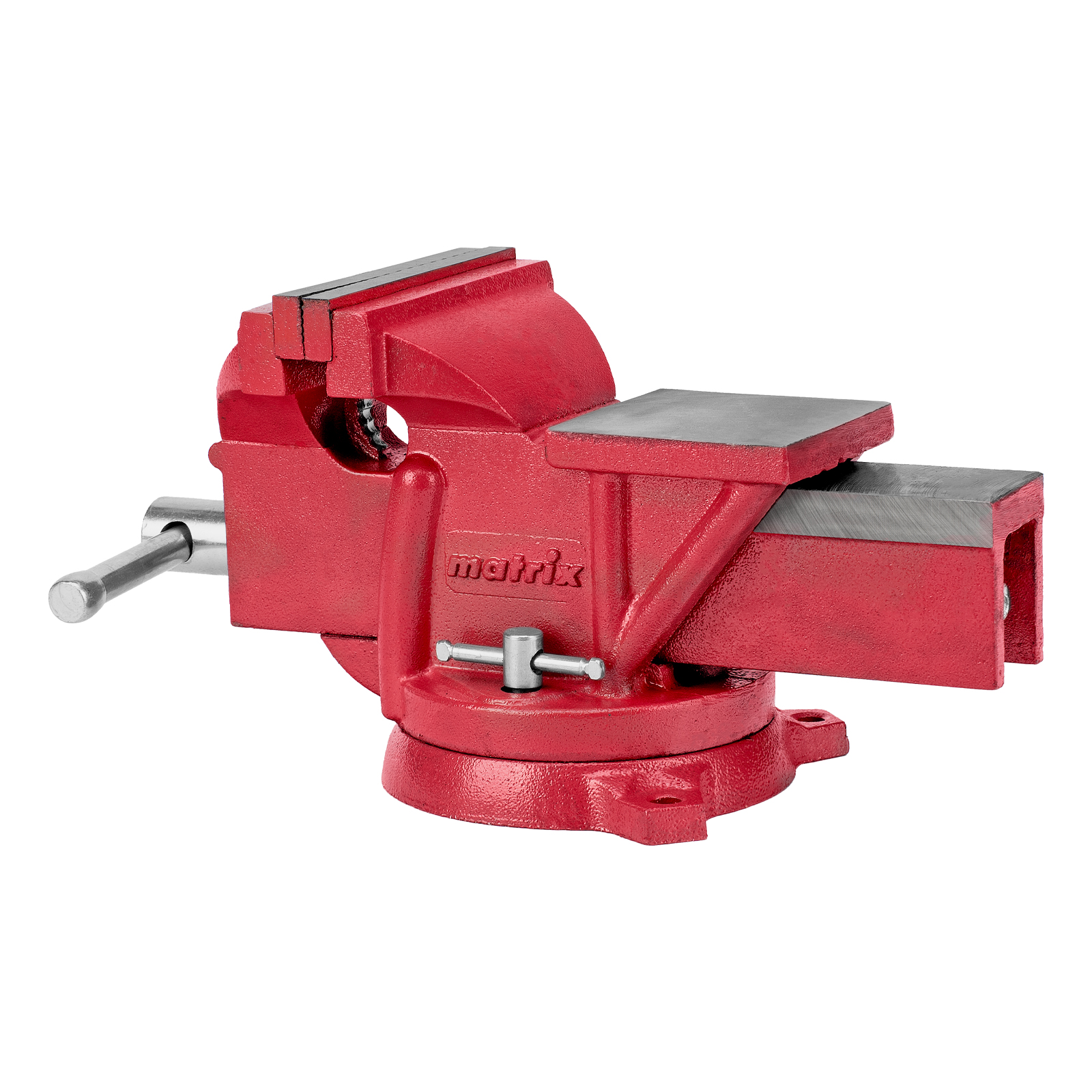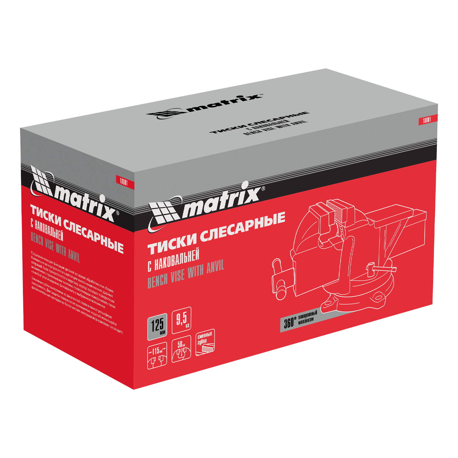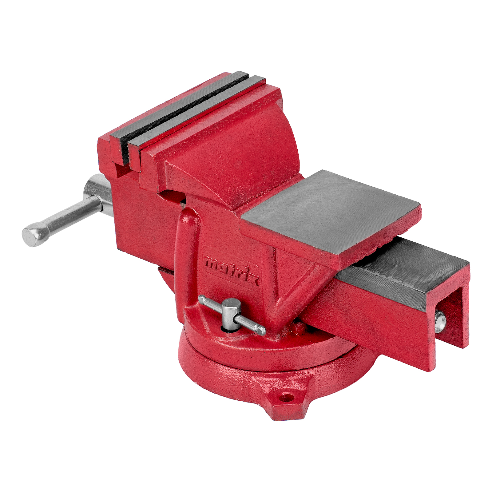 Поворотные слесарные тиски Matrix 18601 с наковальней и губками шириной 125 мм имеют рабочий ход 115 мм и предназначены для захвата и фиксации различных деталей. Поворотный механизм с прижимными винтами позволяет вращать тиски на 360° и фиксировать их в выбранном положении для удобной обработки заготовок с разных сторон. Инструмент используется для шлифовки, сверления и проведения других работ. Будет полезен в мастерской и гараже.