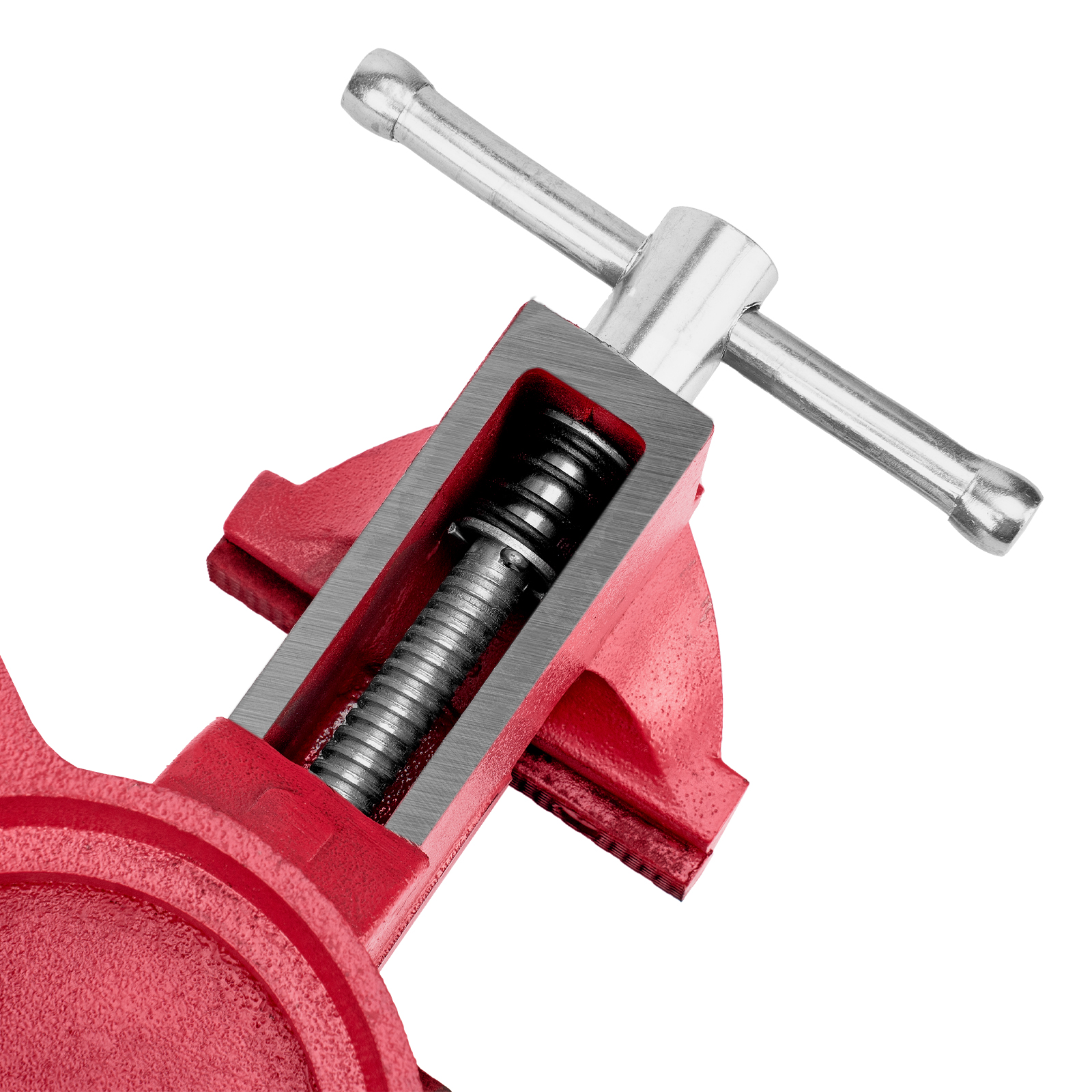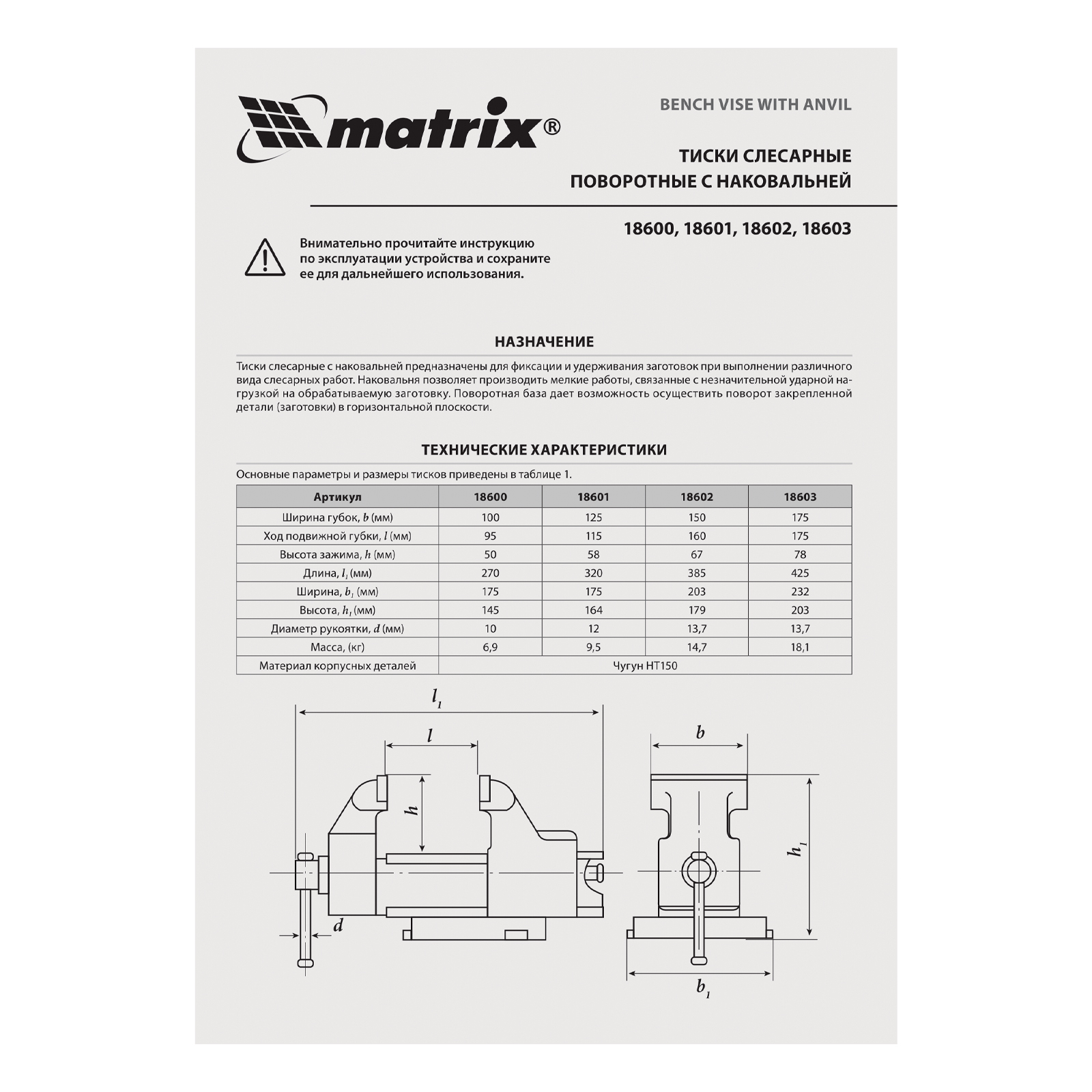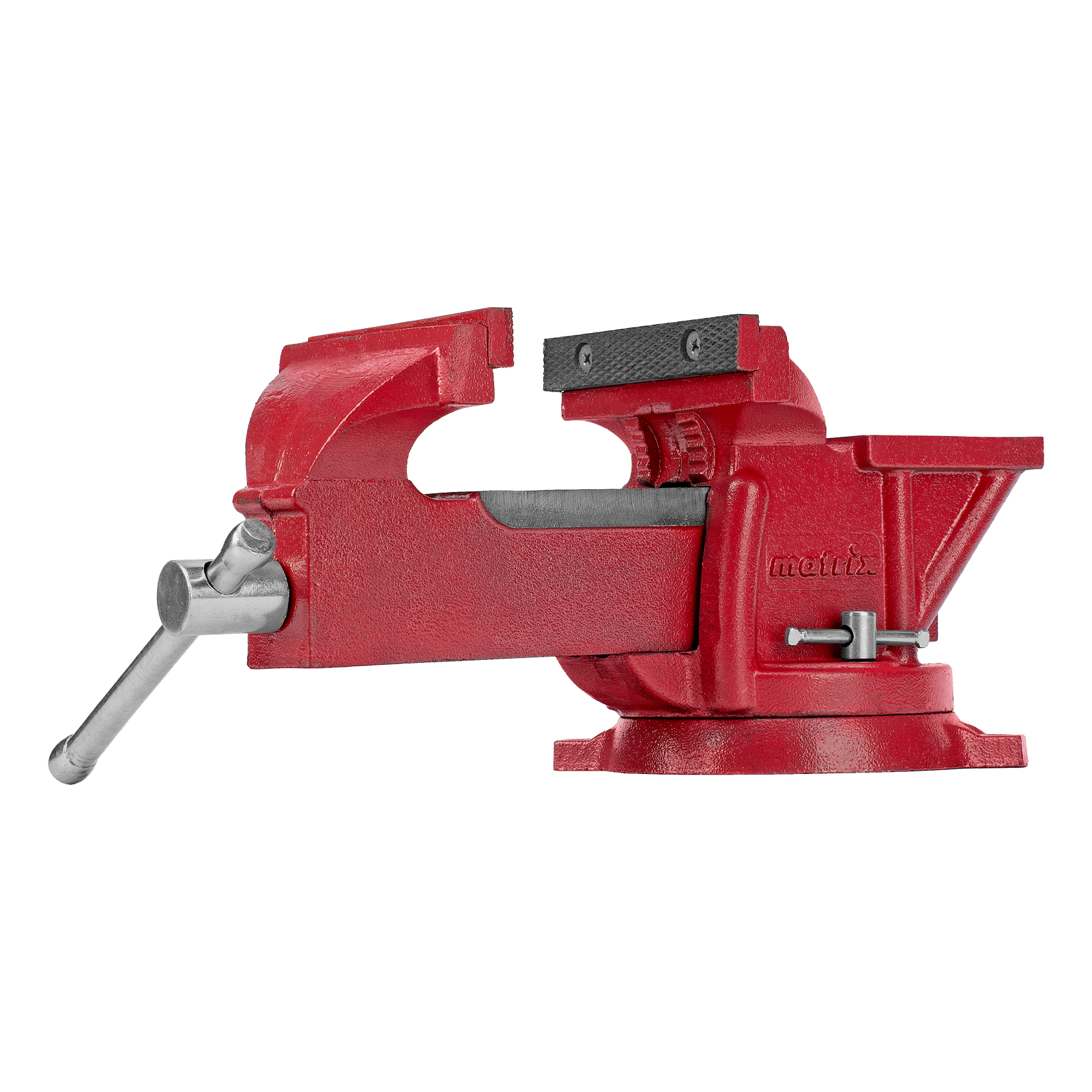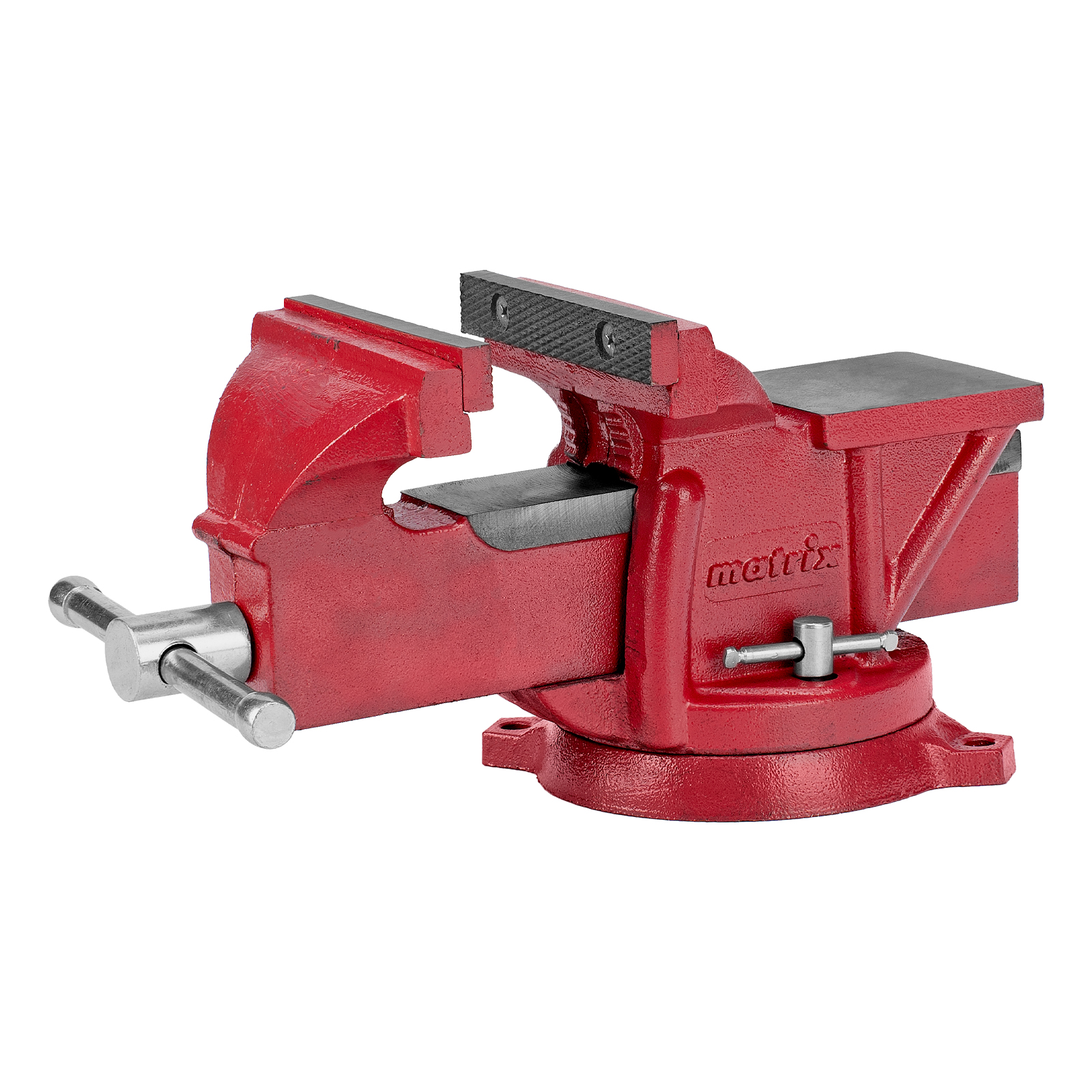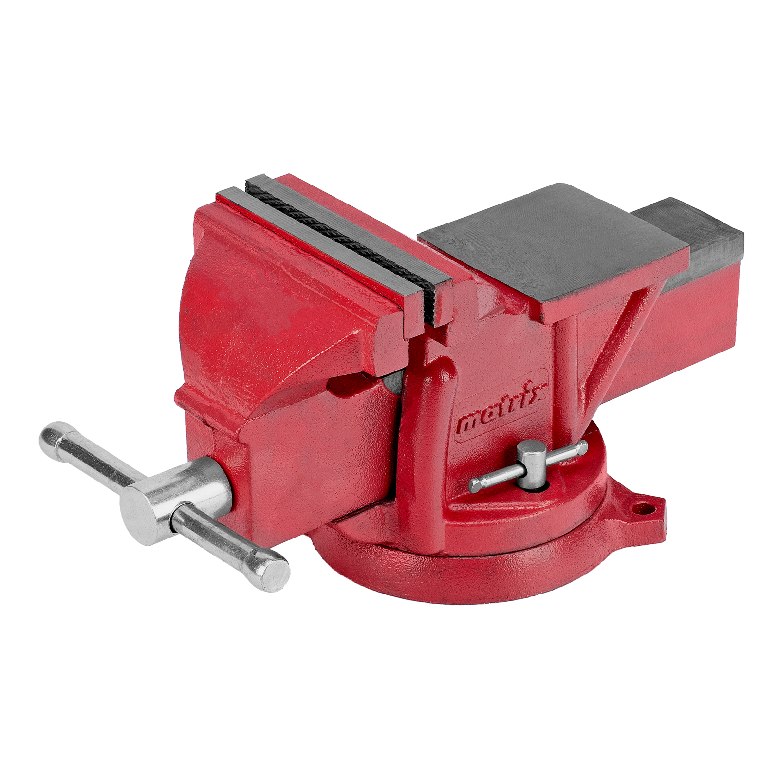 Поворотные слесарные тиски Matrix 18601 с наковальней и губками шириной 125 мм имеют рабочий ход 115 мм и предназначены для захвата и фиксации различных деталей. Поворотный механизм с прижимными винтами позволяет вращать тиски на 360° и фиксировать их в выбранном положении для удобной обработки заготовок с разных сторон. Инструмент используется для шлифовки, сверления и проведения других работ. Будет полезен в мастерской и гараже.