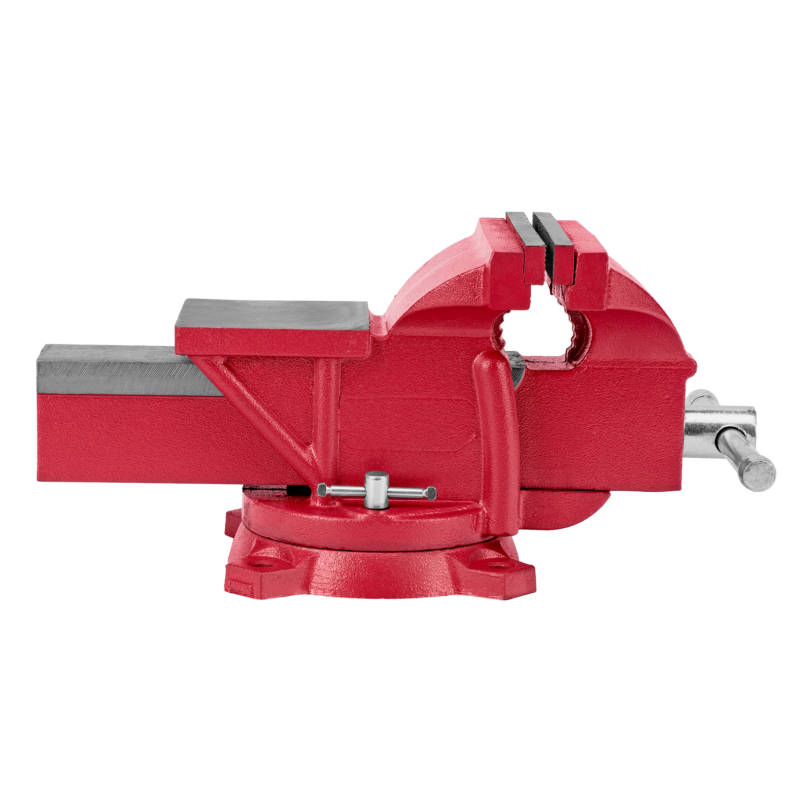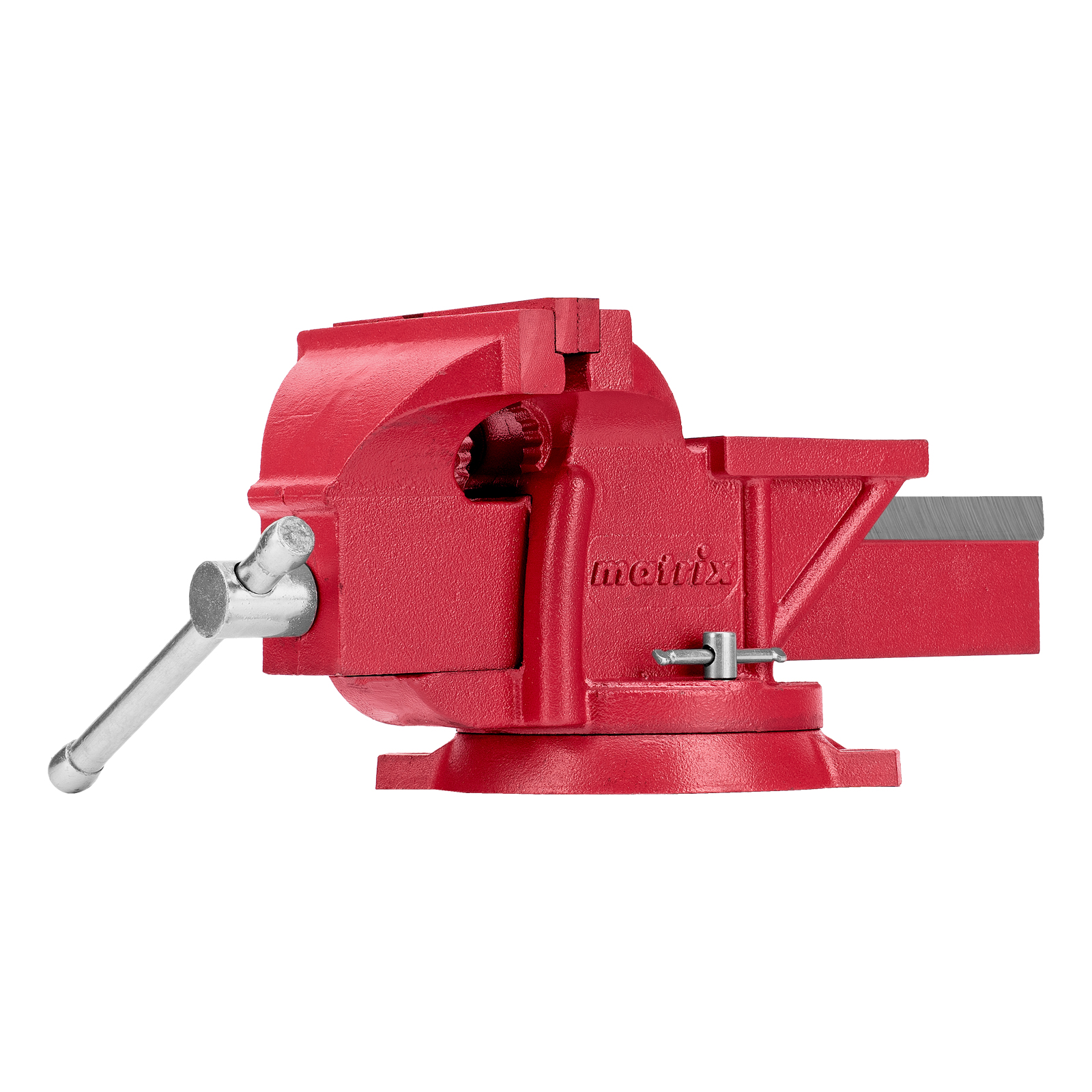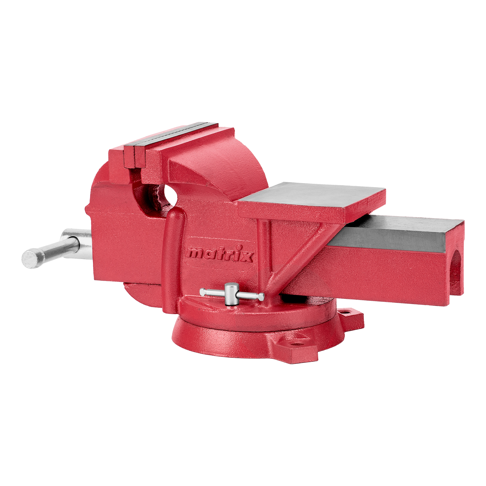 Поворотные слесарные тиски Matrix 18602 с наковальней и губками шириной 150 мм имеют рабочий ход 160 мм и предназначены для захвата и фиксации различных деталей. Поворотный механизм с прижимными винтами позволяет вращать тиски на 360° и фиксировать их в выбранном положении для удобной обработки заготовок с разных сторон. Инструмент используется для шлифовки, сверления и проведения других работ. Будет полезен в мастерской и гараже.
