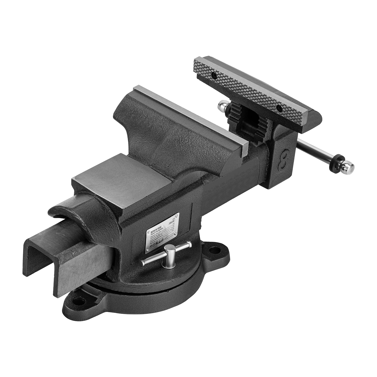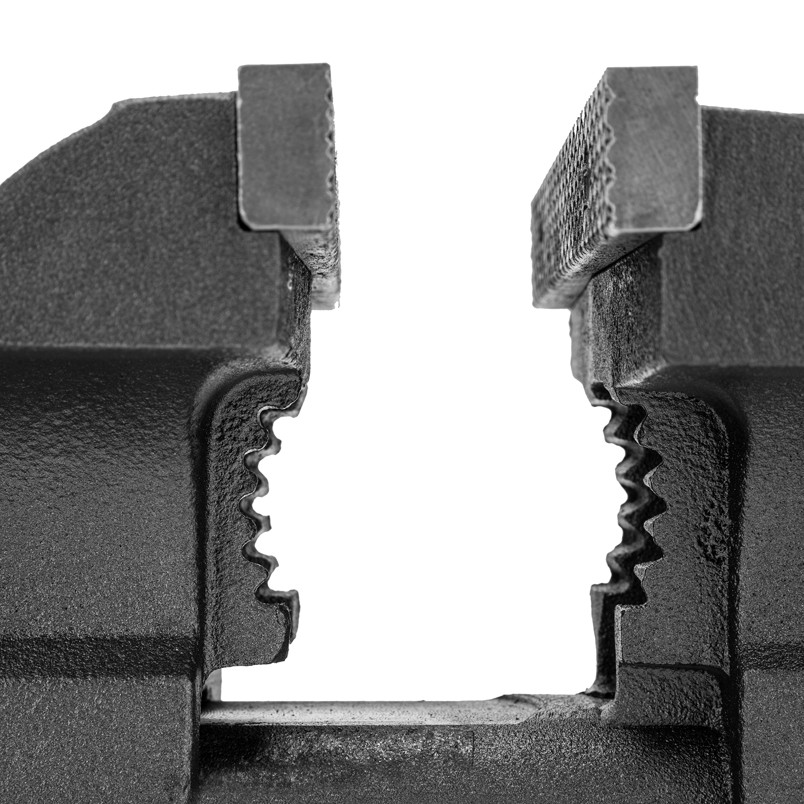 - Функциональность — тиски поворачиваются на 360°, что позволяет менять и выбирать позицию инструмента для удобной работы с заготовкой.