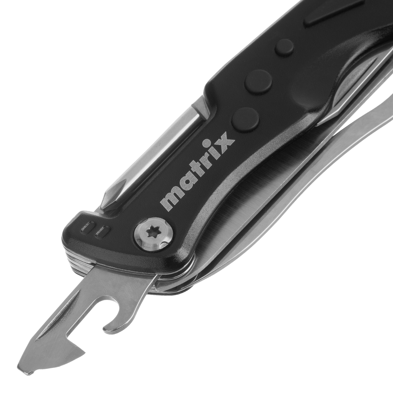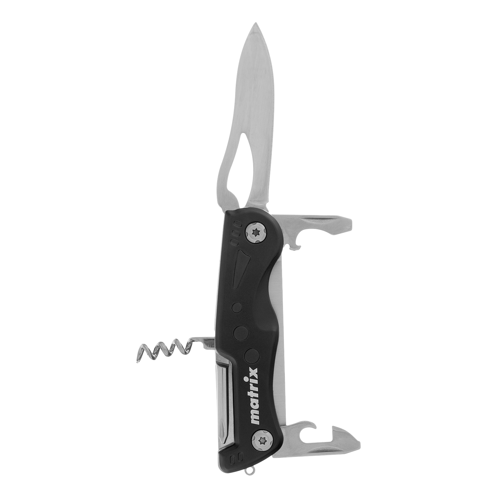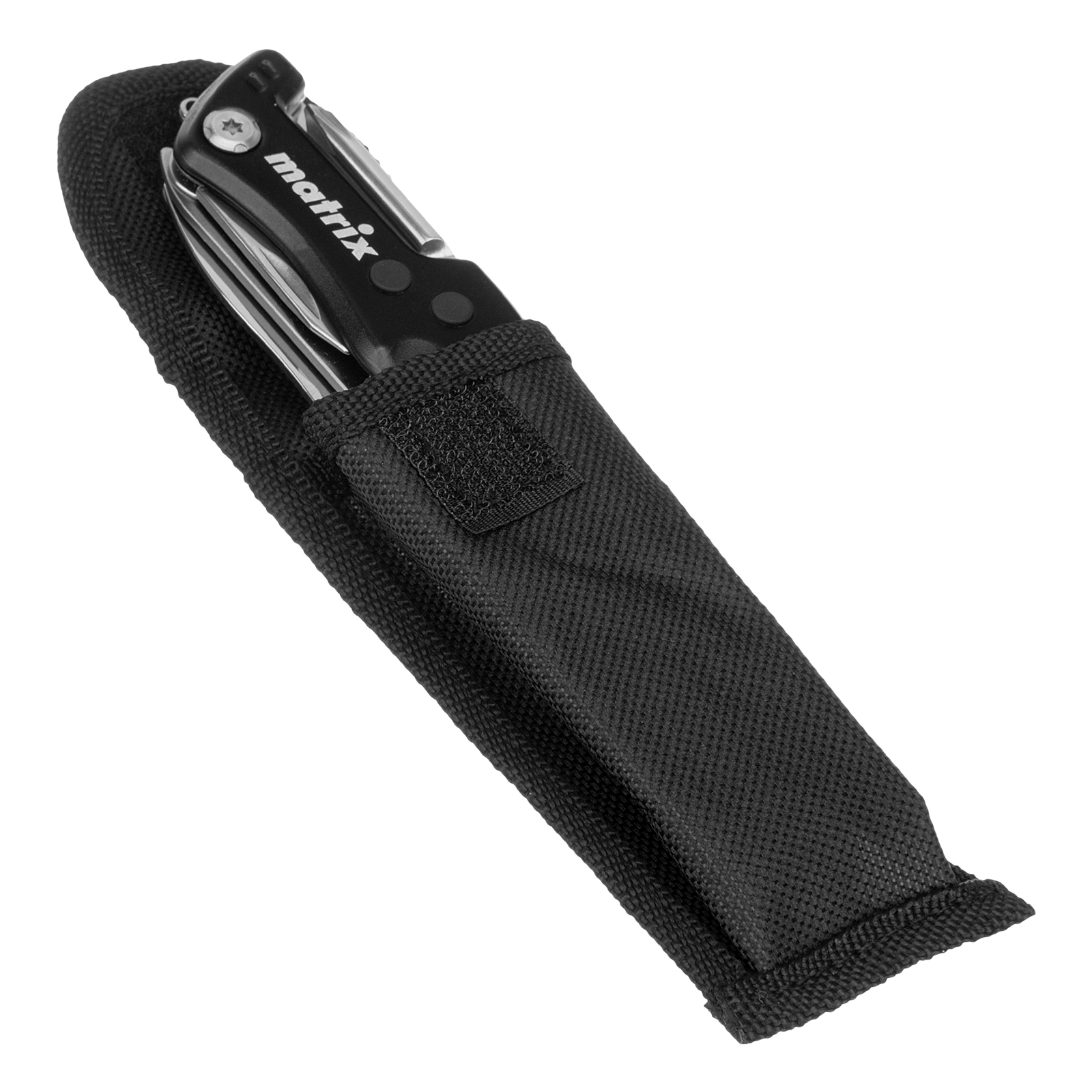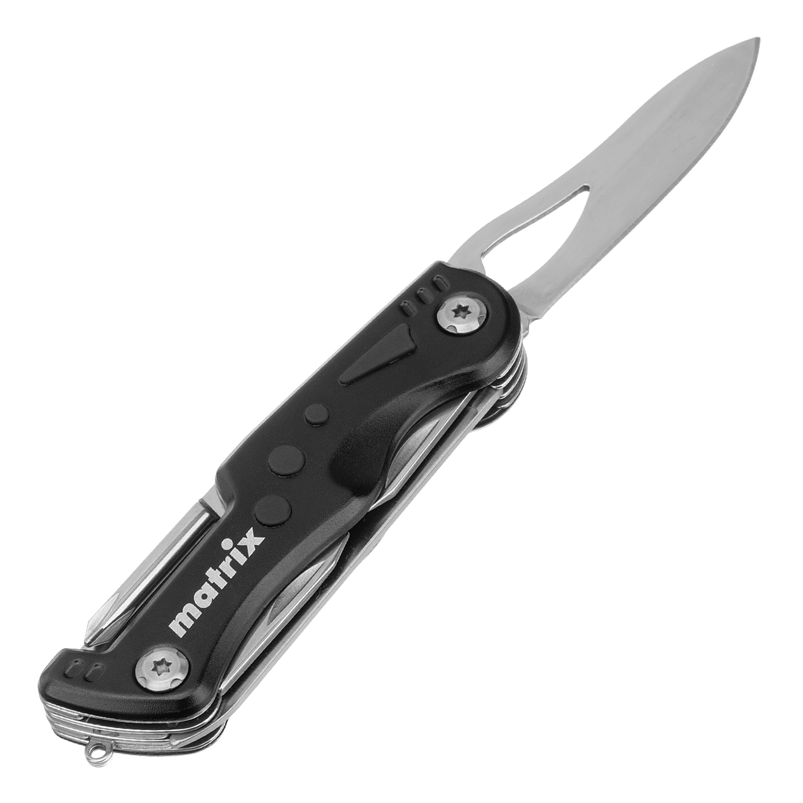 Многофункциональный нож Matrix 17624 длиной 107 мм имеет 7 функций и поставляется с чехлом. Способен резать картон и другие материалы, откручивать и закручивать резьбовой крепеж, открывать бутылки и консервные банки. Складной нож будет полезен дома, на даче, на пикнике, охоте или рыбалке, также пригодится в гараже.