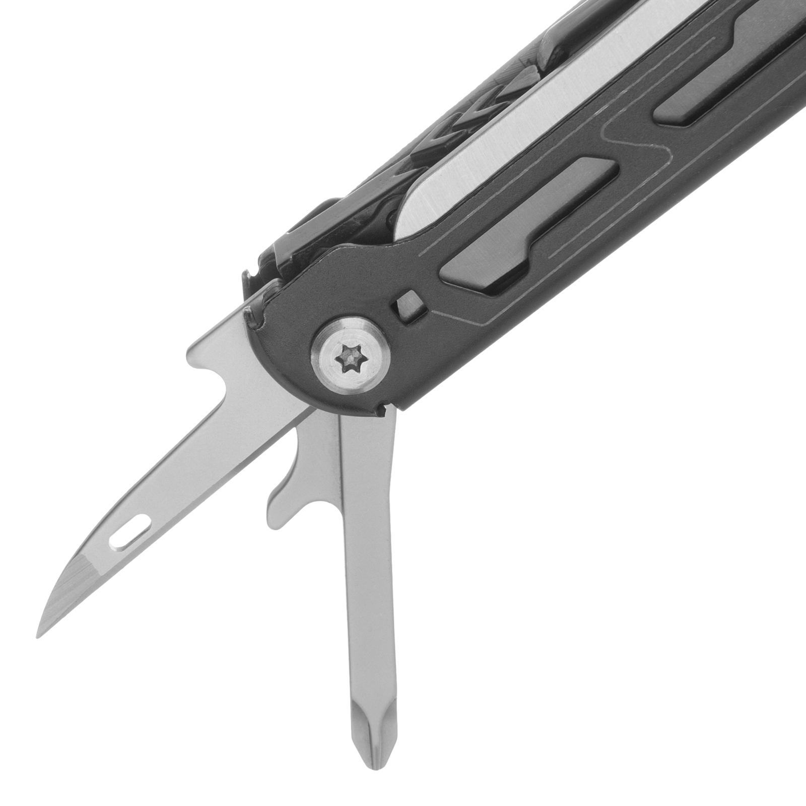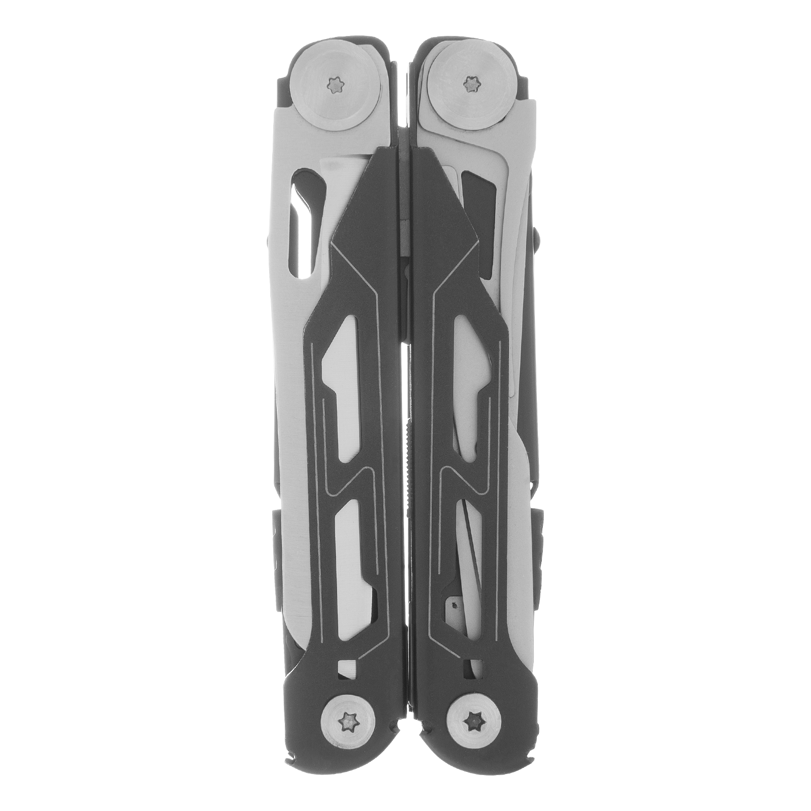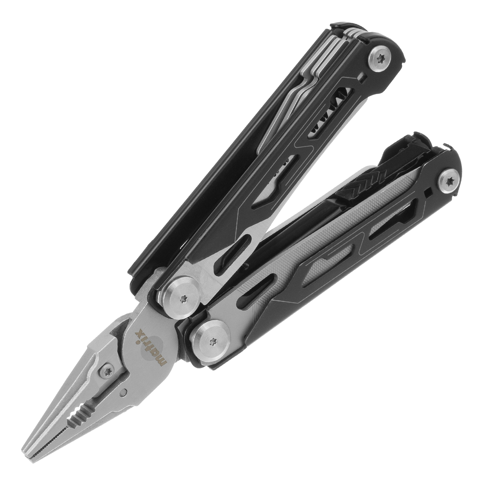 Трансформер (мультитул) Matrix 17627 длиной 160 мм, с авторазжимом, способен выполнять 15 функций. Подходит для выполнения несложных слесарно-монтажных работ, будет полезен дома, на даче, в походе, на рыбалке, также пригодится автолюбителям. Корпус изготовлен из прочной нержавеющей стали, поэтому инструмент прослужит долго.
