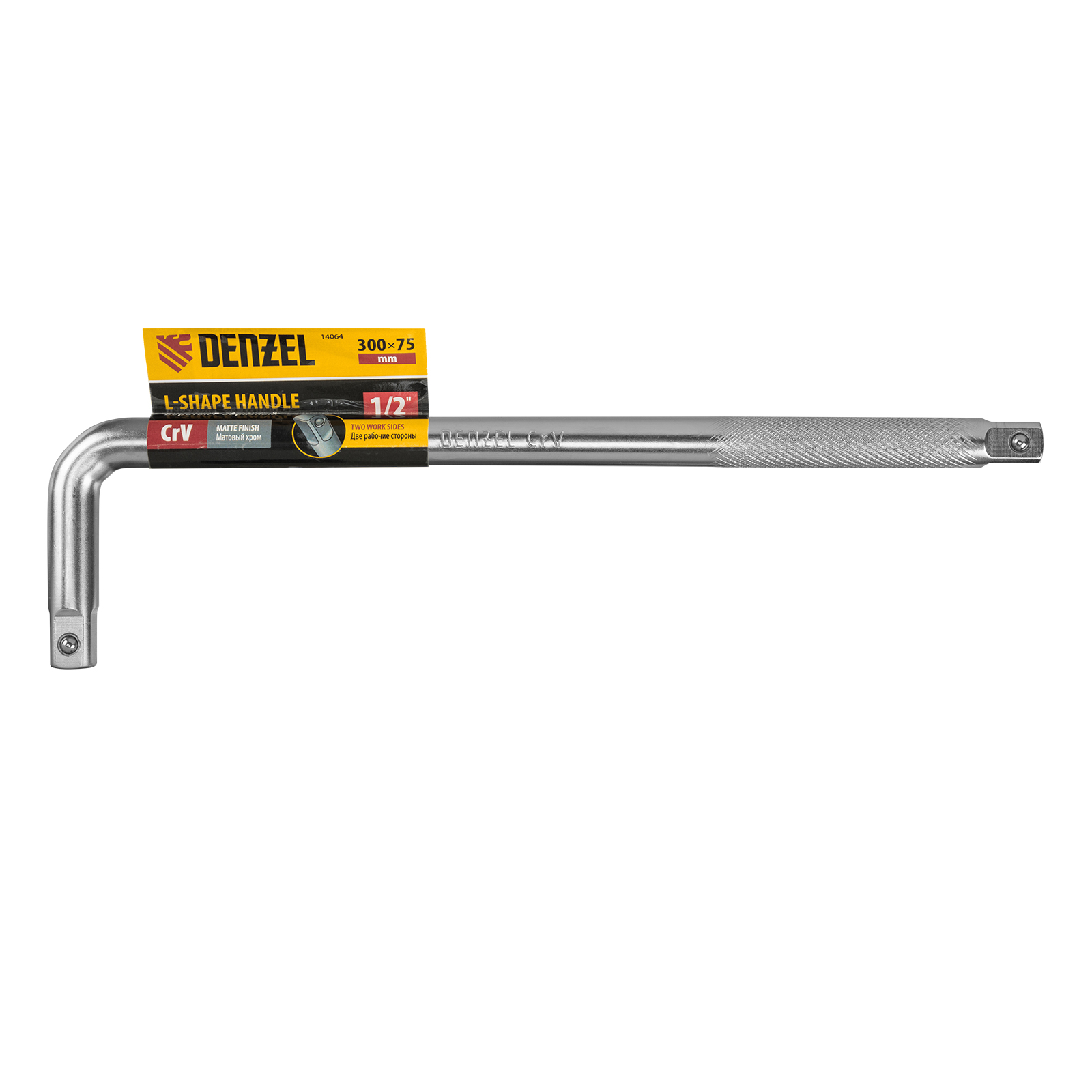 Г-образный вороток Denzel 14064 из стали CrV, размером 300 х 75 мм, с присоединительным квадратом 1/2", с покрытием «матовый хром», предназначен для ручного монтажа и демонтажа гаек, болтов и другого резьбового крепежа с помощью торцевых головок. Может использоваться в бытовой и профессиональной сфере: для ремонта велосипедов, автомобилей, станков.