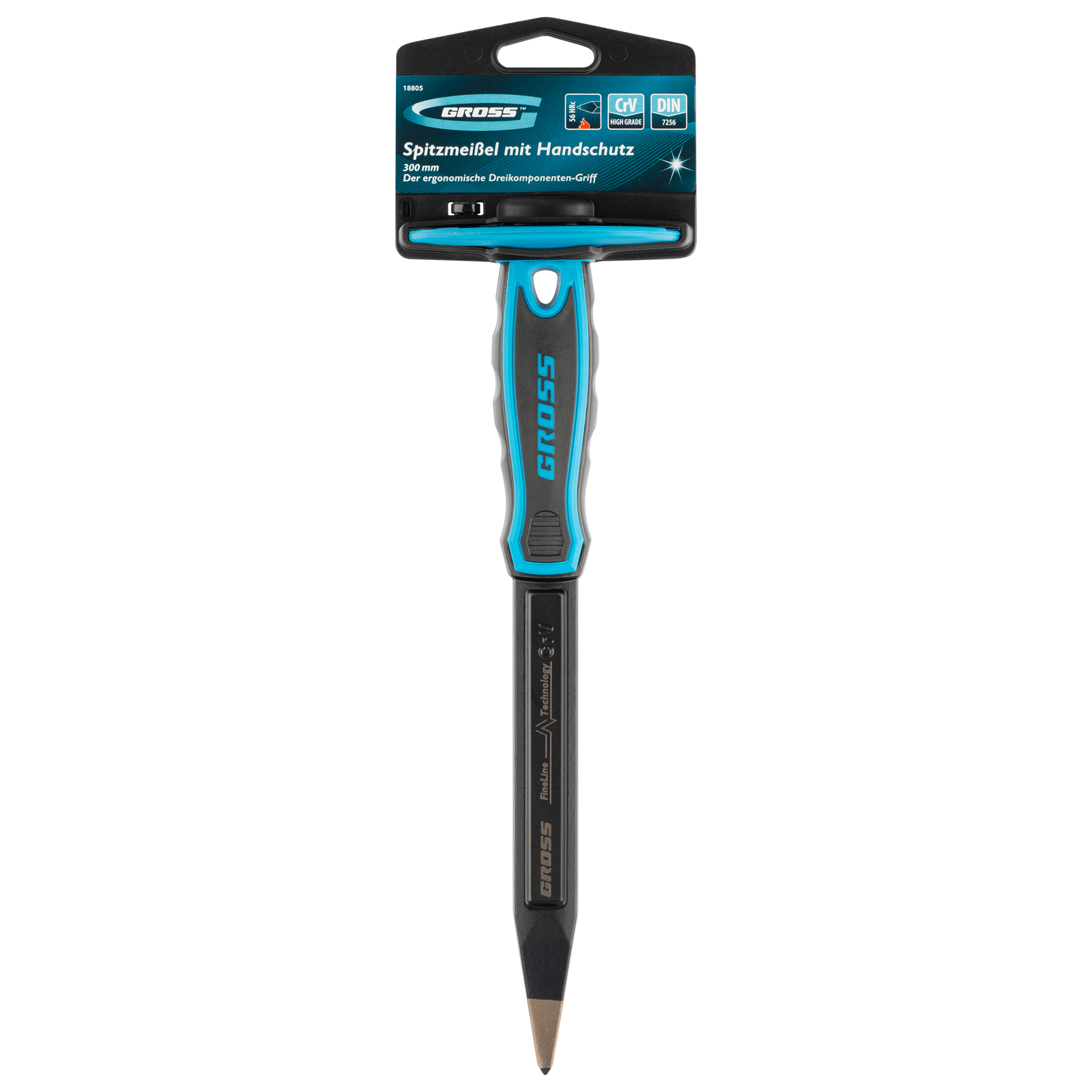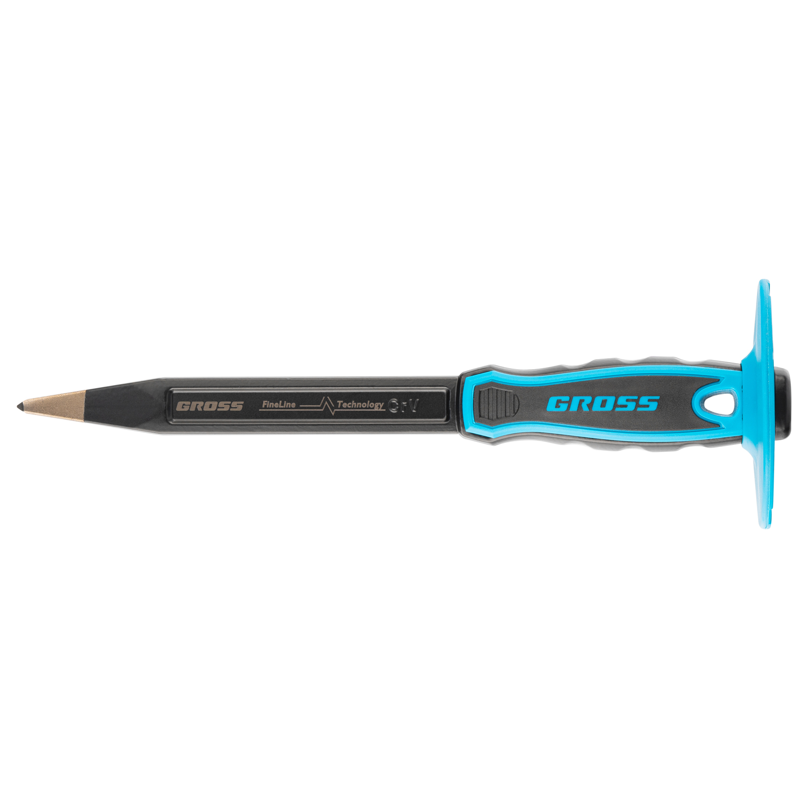 Зубило-керн Gross 18805 длиной 300 мм — ручной инструмент для использования совместно с молотком или кувалдой. Рабочая часть с двусторонней заточкой позволяет штробить бетон или создавать лунки для разметки и установки сверла и бура.