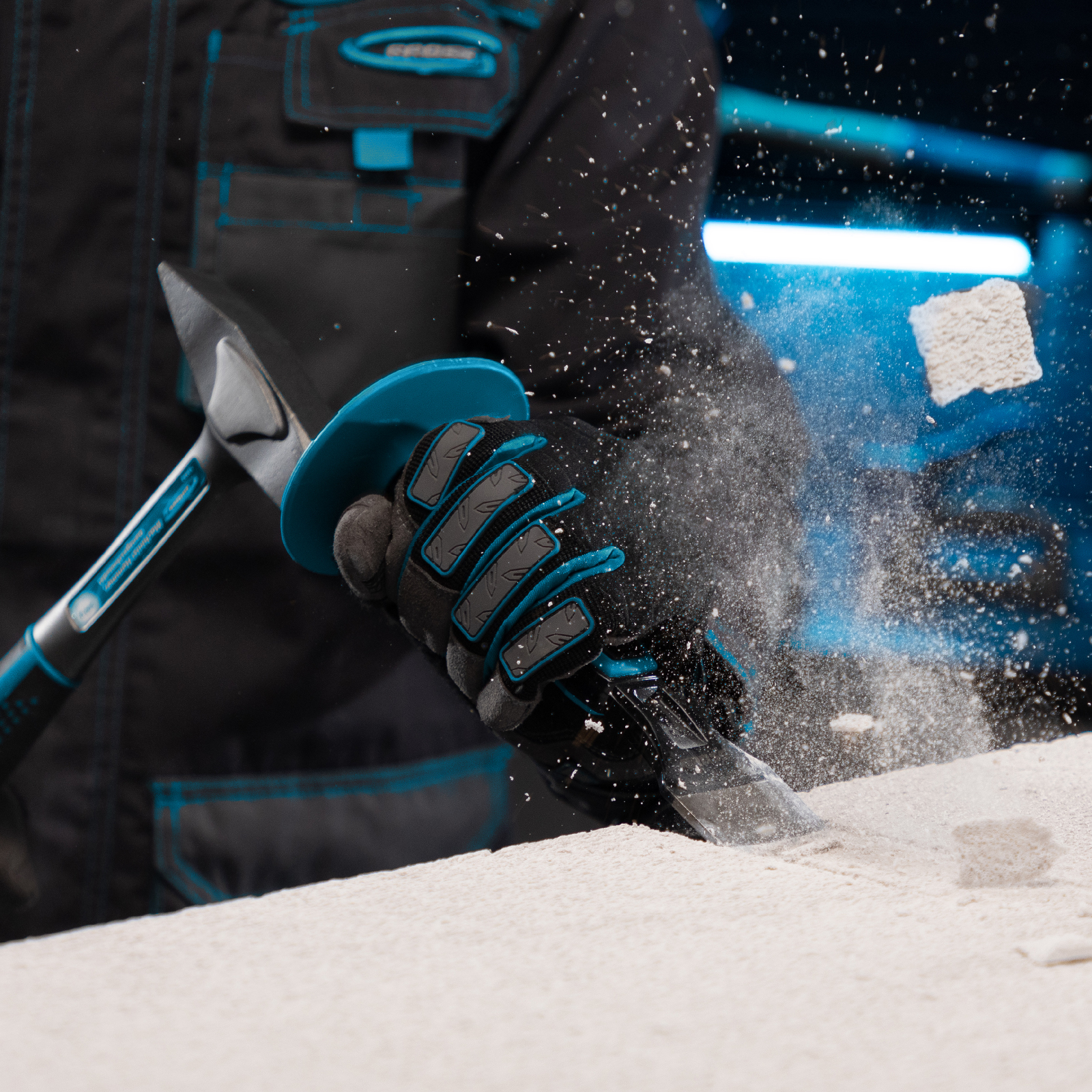 - Безопасность — протектор предотвращает случайное попадание молотком или киянкой по руке.