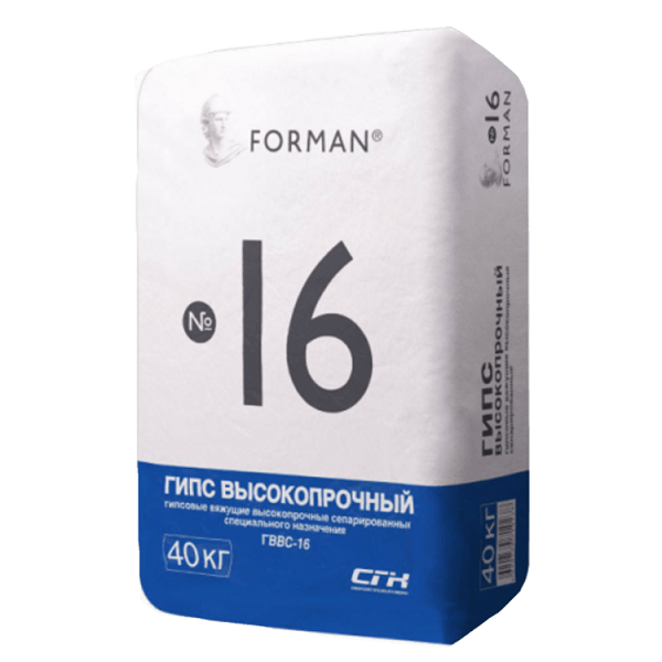 Гипс Г-16 является особо чистым материалом, обладающим высокими адгезионными характеристиками. При этом гипс довольно пластичен и удобен в работе. Соответствует ГОСТ-79.