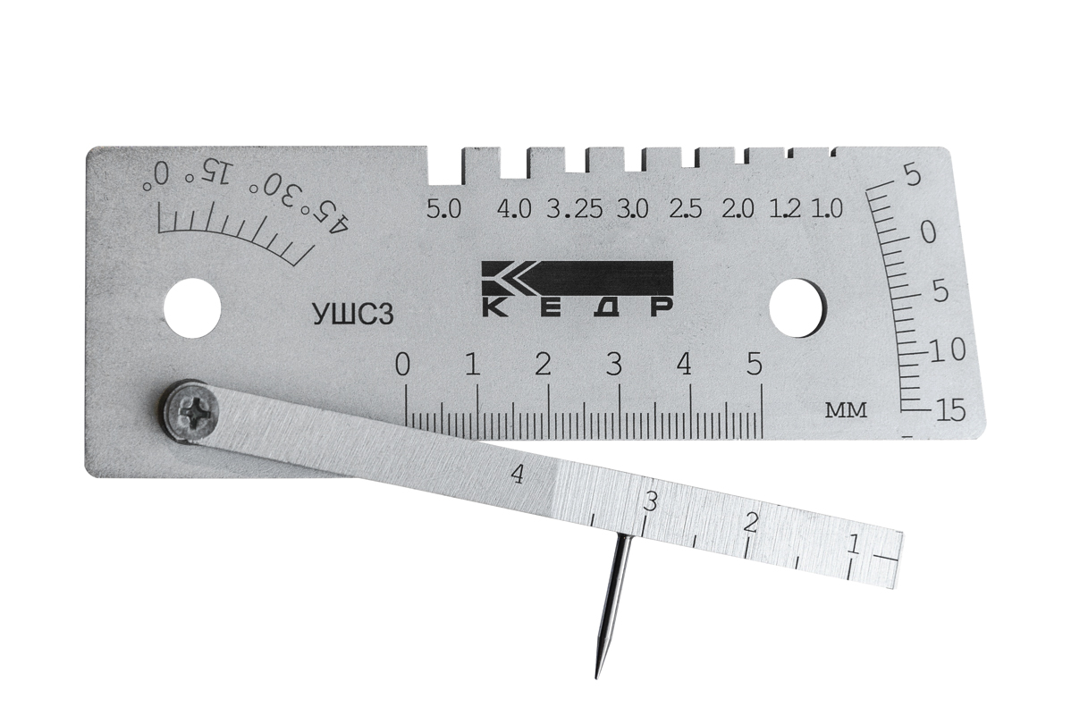 Шаблон сварщика КЕДР УШС-3 предназначен для измерения контролируемых параметров труб, контроля качества сборки стыков соединений труб, а также для измерения параметров сварного шва при его контроле.