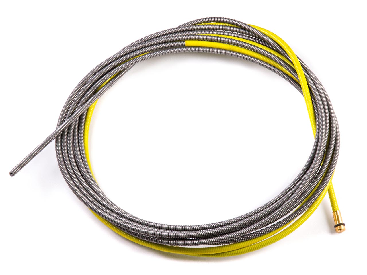 Канал направляющий PRIME (1,2–1,6) 5,4 м желтый необходим в сварке типов MIG\MAG для подачи сварочной проволоки к соплу сварного пистолета. Подача происходит непосредственно от инвертора или от выносного элемента, подающего проволоку. Фиксация концов канала осуществляется в горелке и в инверторе.